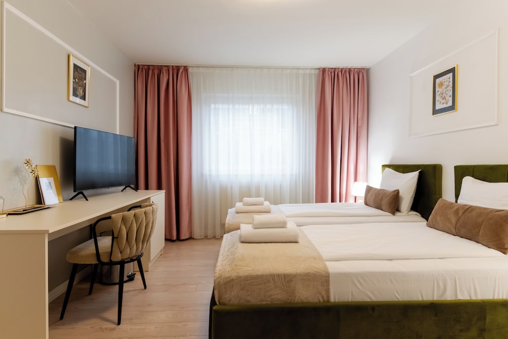 A stay at Hotel Royal Plaza places you in the heart of Timisoara, within a 5-minute drive of Piata Uniri and St. George's Cathedral. This hotel is 1.3 mi (2.1 km) from Iulius Mall and 1.7 mi (2.7 km) from Banat Village Museum. Treat yourself to a stay in one of the 30 individually decorated guestrooms, featuring fireplaces and Smart televisions. Complimentary wireless internet access keeps you connected, and digital programming is available for your entertainment. Conveniences include safes and desks, and housekeeping is provided daily. Distances are displayed to the nearest 0.1 mile and kilometer.