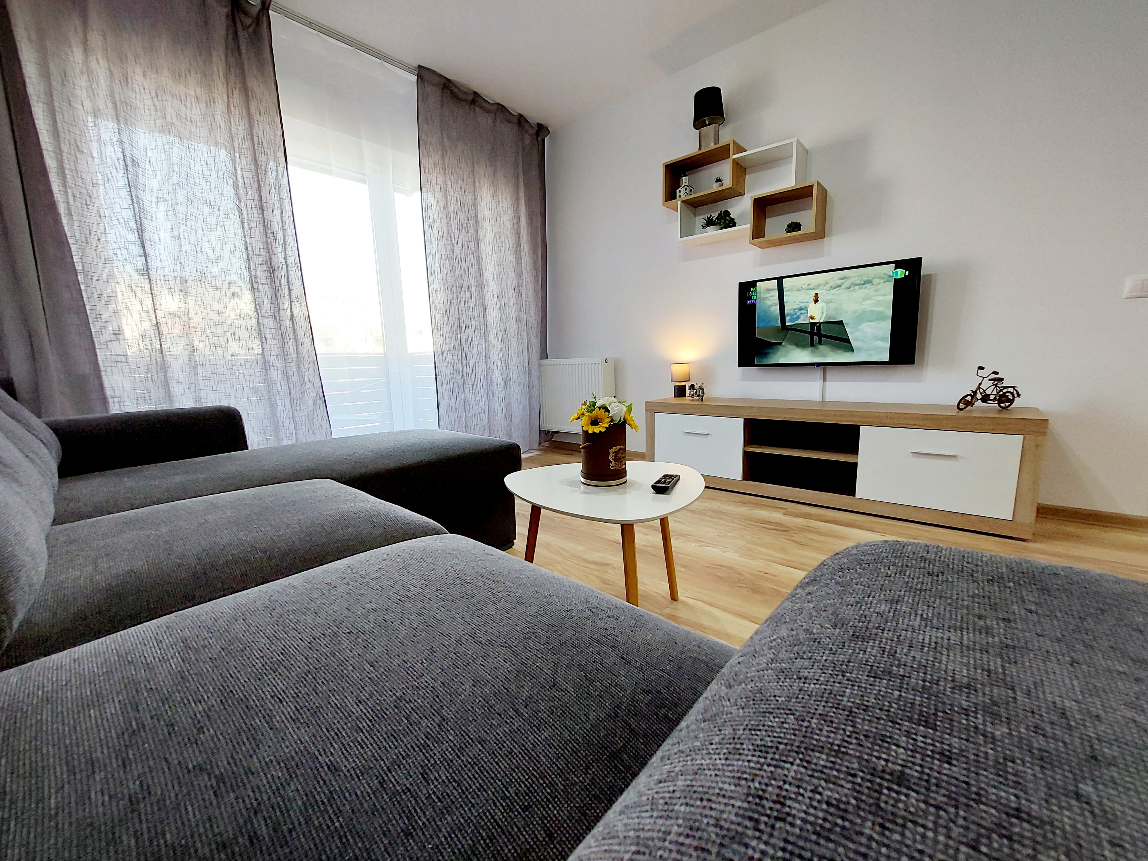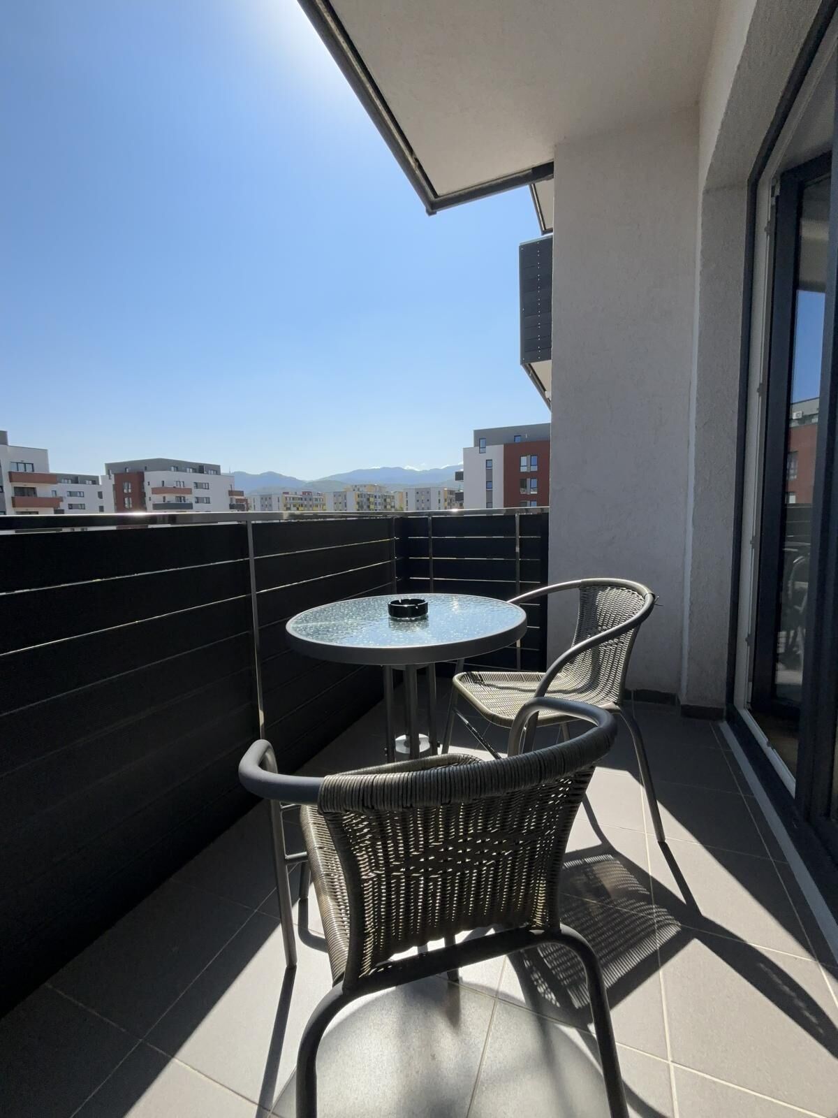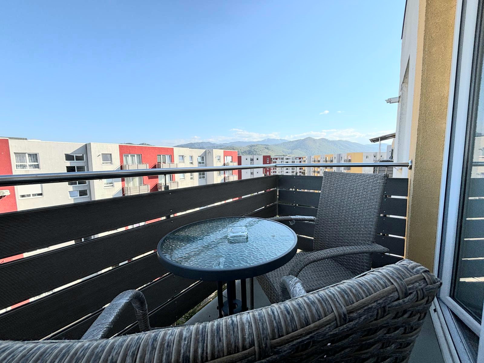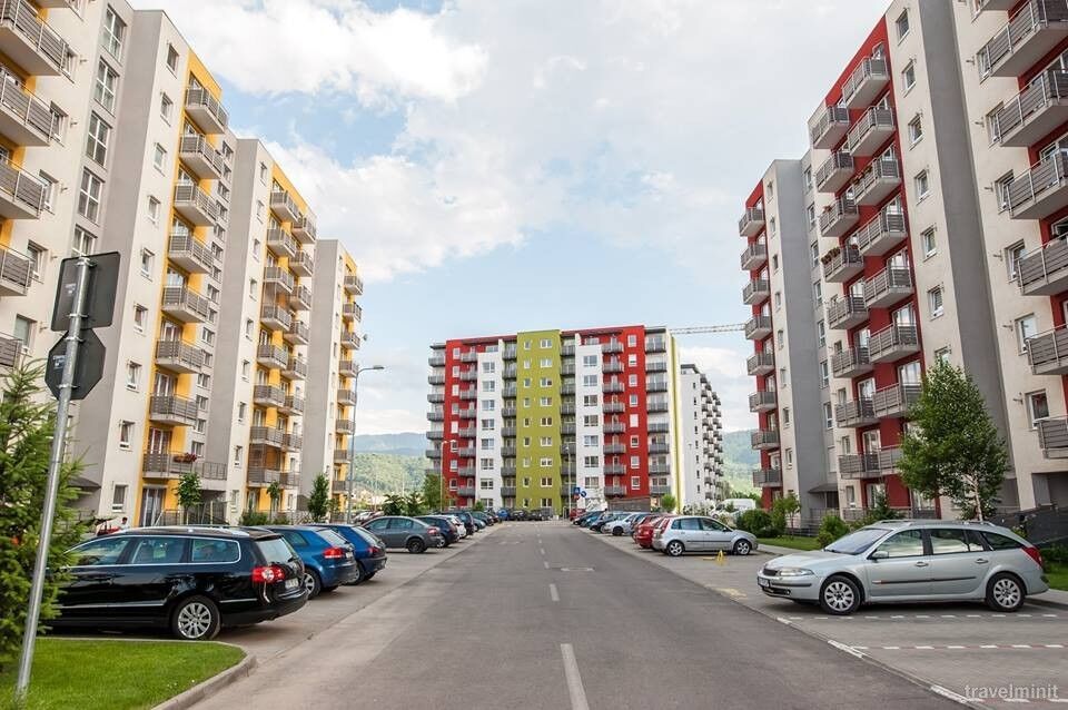 We offer hotel-style apartments, all rated 3 stars by the Ministry of Tourism, located in Braov, in a modern residential area, Avantgarden Bartolomeu, just 4 km from the historic center, with quick and strategic access to all areas of tourist interest in Braov and its surroundings, such as Bran Castle, Rânov Fortress and Dino Park, and the Water Paradise. They offer all the comforts for a pleasant and relaxing stay. They have a bedroom with a double bed, a fully equipped modern kitchen, a spacious living room with a double sofa bed, a furnished terrace with mountain views, and private parking. The apartments are located in a residential complex with playgrounds, generous green spaces, relaxation areas for moments of tranquility, restaurants, and various shops. The bus stop is a 2-minute walk away, providing easy access to the historic center (8 minutes away), the train station (15 minutes away), the airport (9 minutes away), and Poiana Braov. The accommodation units are easily accessible, ideal for families with children and wheelchair users; a small ramp provides access to the lobby, from where you can reach the accessible elevator that serves all floors, from which you can access the apartment entrances. Located just 2-4 minutes apart, our apartments are perfect for a vacation in Braov, even for groups or delegations. Discover the magic of Braov with a stay with us!