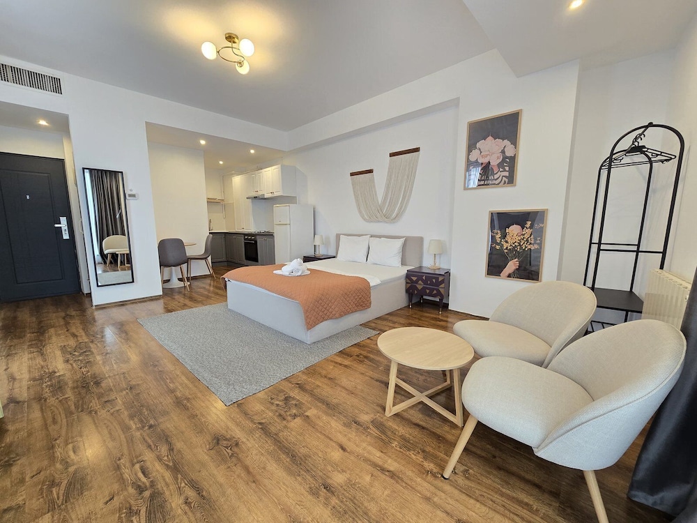 With a stay at Mosilor Residence Apartments in Bucharest (Bucharest City-Centre), you'll be within a 10-minute drive of Palace of the Parliament and Dinamo Stadium. This aparthotel is 13 mi (20.9 km) from Therme Bucharest and 1.1 mi (1.8 km) from University Square. Make yourself at home in one of the 14 air-conditioned rooms featuring kitchenettes with refrigerators and stovetops. LED televisions with digital programming provide entertainment, while complimentary wireless internet access keeps you connected. Conveniences include microwaves and coffee/tea makers, and housekeeping is provided weekly. Distances are displayed to the nearest 0.1 mile and kilometer.
