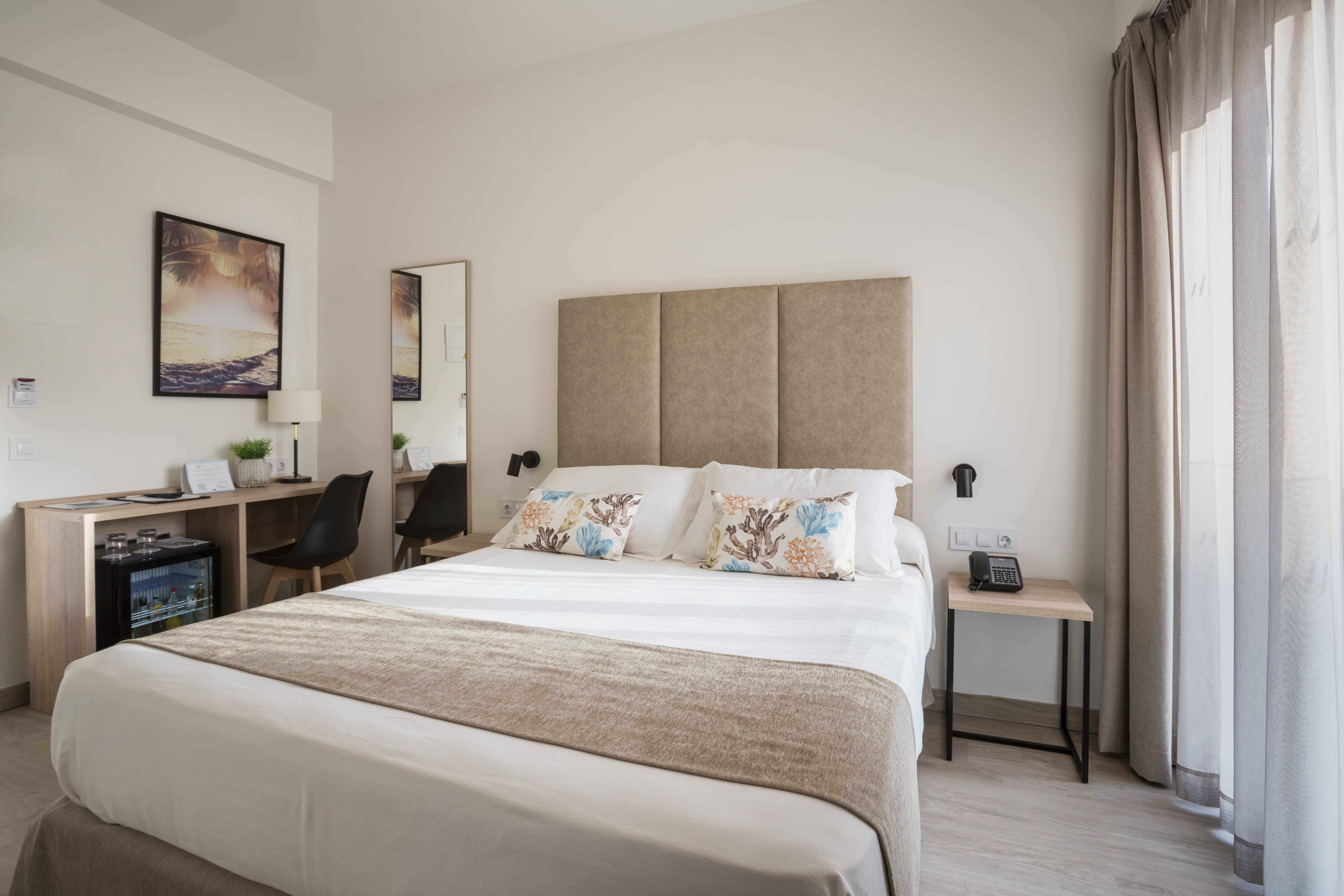 Located beside C'an Pastilla beach and 2 km from the airport, this modern hotel features minimalist style and Mediterranean-inspired architecture. Nearby are shops, restaurants, and bars. The hotel offers 205 rooms with air conditioning, satellite TV, and bathrooms with hairdryers and bath amenities. Guests can enjoy an outdoor swimming pool and sun terrace.