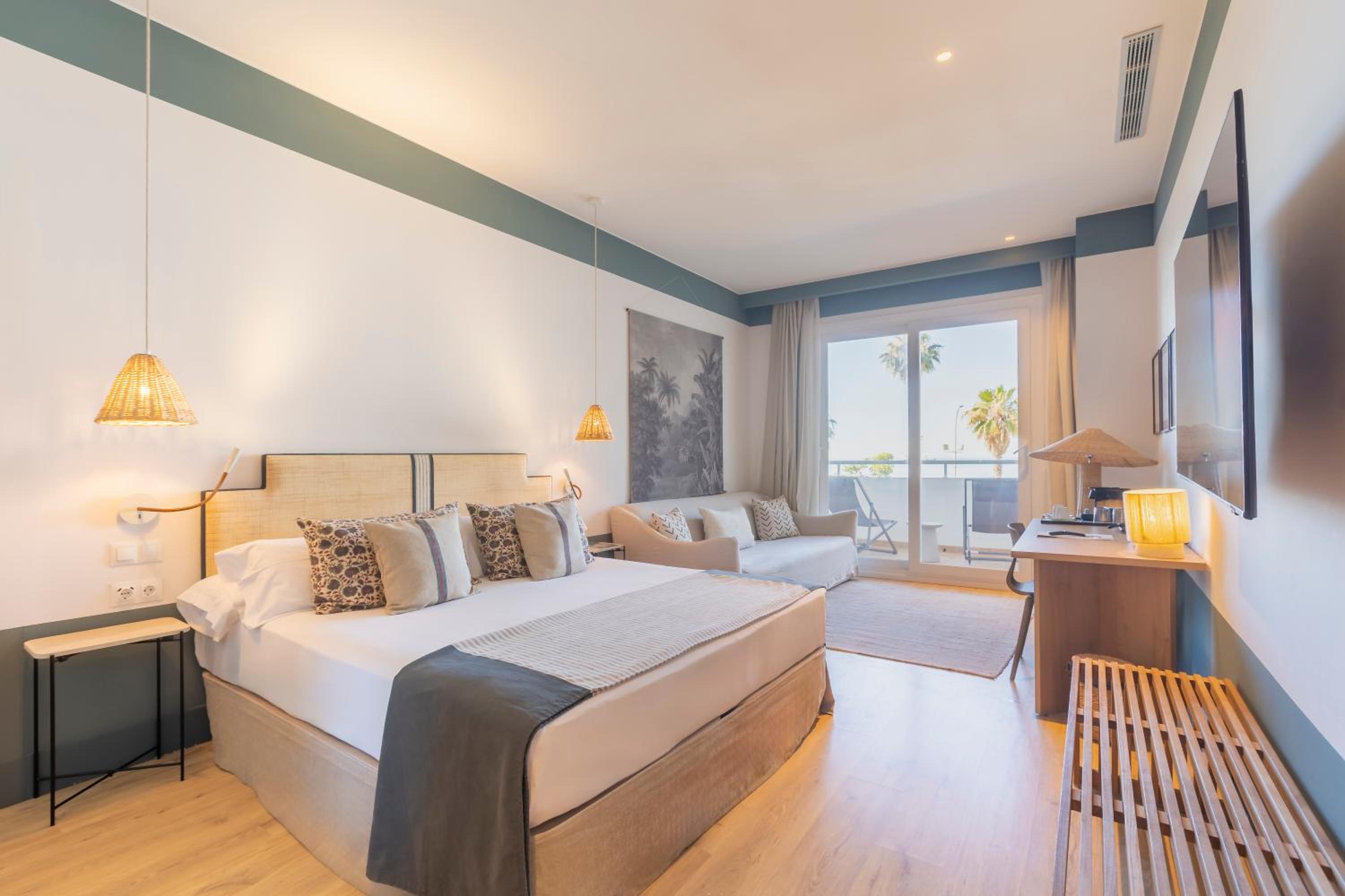 Soho Boutique Las Vegas is a beachfront hotel in Malaga, a 20-minute drive from Malaga Airport and a 30-minute walk from Málaga Cathedral and the Picasso Museum. The hotel offers spacious, air-conditioned rooms with private balconies, free Wi-Fi, a safe, satellite TV, and a marble bathroom with a hairdryer. Amenities include an outdoor pool, gardens, a poolside café serving a continental breakfast buffet, a café-bar at reception, 24-hour reception with luggage storage and visitor information, and limited on-site parking (surcharge applies, reservations not possible). Quadruple rooms are available. Dogs are welcome (maximum 10 kg, €10/night, €20 cleaning supplement, prior request required). The hotel also features a snack-bar and a conference room (capacity 40). A range of bars and restaurants are within 50 meters. Airport transportation, car hire, and shuttle services are available. The hotel has obtained the Ecostars Certificate for sustainable practices. Pet amenities include an eco water bowl, eco food bowl, biodegradable bags, bag dispenser, healthy snacks, and a play ball or water bowl.