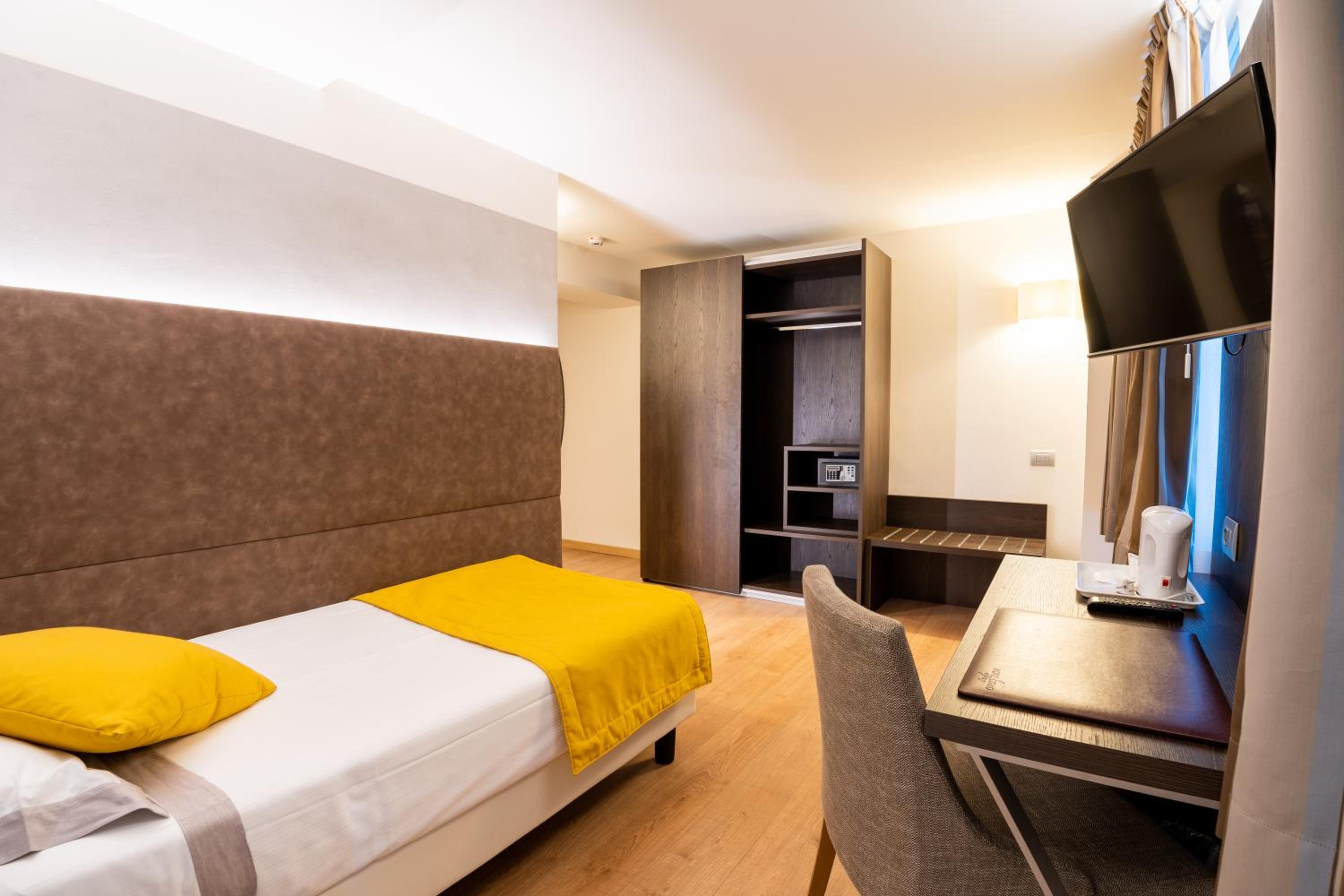 Hotel Como offers air-conditioned rooms with parquet floors, flat-screen satellite TVs, minibars, and complimentary WiFi. Bathrooms include hairdryers and toiletries. Guests can enjoy a seasonal outdoor pool and a rooftop terrace with views of the surrounding hills. The hotel also features a bar/lounge, a poolside bar, wedding services, a reception hall, a computer station, and a 24-hour front desk. Buffet breakfasts are available daily (for a fee). Fitness facilities and self-parking (subject to charges) are available. The hotel is located a short distance from Como city centre.