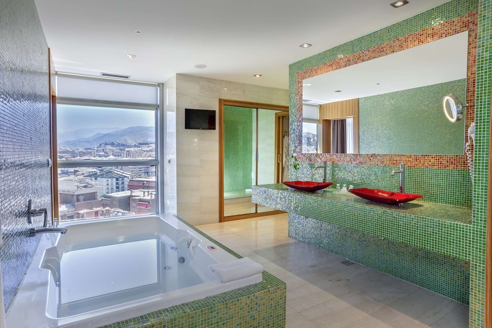 The Barceló Granada Congress is a centrally located hotel in Granada, near Calle Recogidas, the city center, the Congress and Exhibition Center, and the Science Park. It offers 249 air-conditioned rooms with amenities such as complimentary Wi-Fi, satellite TV, minibars, safes, and desks. Bathrooms feature bathtubs, complimentary toiletries, and bidets. The hotel features a restaurant, a coffee shop/cafe, and a bar/lounge. Guests can enjoy a health club, a seasonal outdoor pool, and a spa with massages, body treatments, and facials. Additional amenities include concierge services, ski storage, a business center, and dry cleaning/laundry services. The hotel offers 2300 square meters of space consisting of a conference center and 10 meeting rooms. Airport shuttle service and self-parking are available for a surcharge.