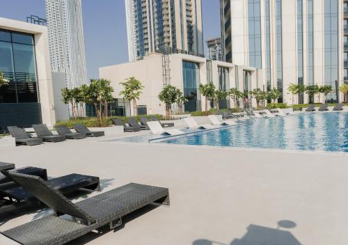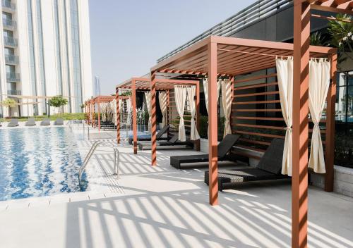 Hotel Overview: Located in the vibrant Dubai Creek Harbour, Nasma Luxury Stays Harbour Gate T1 combines contemporary luxury with eco-friendly practices. The hotel's sleek architectural design and prime location near key business and leisure destinations make it a standout choice. Accommodations: Nasma Luxury Stays Harbour Gate T1 caters to a variety of travelers with its richly appointed rooms and suites. Guests can enjoy a comfortable stay in one of the 150 elegantly appointed guestrooms. Each of the 150 rooms at Nasma Luxury Stays offers unparalleled comfort and elegance. Guests can choose from deluxe rooms, suites, and penthouses featuring king-sized beds, marble bathrooms, and private balconies with breathtaking views of the city or garden. In-room amenities include high-speed Wi-Fi, flat-screen TVs, minibars, premium bedding, exclusive toiletries, and spacious seating areas. Amenities: The hotel offers a range of luxurious amenities including concierge services, valet parking, private cabana rentals at the poolside lounge area. VIP services such as butler and limousine rentals are available to enhance your stay. Dining Options: The hotel features multiple dining venues including The Terrace Grill for steaks and seafood; Skyline Sushi offering exquisite Japanese cuisine; both settings offer unique rooftop dining experiences. Room service is available around the clock. Nearby Location & Transportation: Nasma Luxury Stays is conveniently located just 10 kilometers from Dubai International Airport and 8 kilometers from Burj Khalifa Metro Station. It provides easy access to major transportation hubs. Nearby Attractions: Dubai Mall - 8 km: A global shopping destination with entertainment venues. Dubai Opera - 10 km: Renowned for world-class performances. Wellness And Activities: Guests can indulge in a variety of wellness offerings including a full-service spa with signature treatments like hydrotherapy massages or relaxation sessions in our serenity yoga studios. The fitness center is equipped with modern equipment; several pools provide a refreshing escape. Policies & Check-In Instructions: Check-in begins at 3 PM; government-issued photo identification required Pets are not allowed except for service animals Special requests are subject to availability upon check-in Summary: Nasma Luxury Stays is perfect for travelers seeking luxury amidst sustainability. Conveniently located near business hubs like Dubai Creek Harbour yet serene enough for leisure travelers seeking tranquility. License Number: AL-HAR-YPL9L Disclaimer notification: Amenities are subject to availability and may be chargeable as per the hotel policy. Doha (DIA-Doha Intl.)[24-hour security, CCTV in common areas, Number of outdoor pools - 1, outdoor pool (all year), Visual alarms in hallways, CCTV outside property, Swimming pool, Outdoor pool, Fitness centre, linens, towels and laundry washed in accordance with local authority guidelines, 24-hour front desk, Air conditioning, Concierge services, guests have the option to cancel any cleaning services for their accommodation during their stay, Security alarm, Smoke alarms, guest accommodation sealed after cleaning, use of cleaning chemicals that are effective against coronavirus, hand sanitizer in guest accommodation and key areas, Smoke-free property, Fire extinguishers, Safety Deposit Box, Terrace, Private parking, Free self parking, Parking, Free parking, Parking garage, Covered parking, parking on site, secured parking, Non-smoking throughout, Non-smoking rooms, staff follow all safety protocols as directed by local authorities, Lift, Wheelchair accessible – no, Family rooms, Elevator, first aid kit available, Well-lit path to entrance, wifi, Free WiFi, internet services, wifi available in all areas]