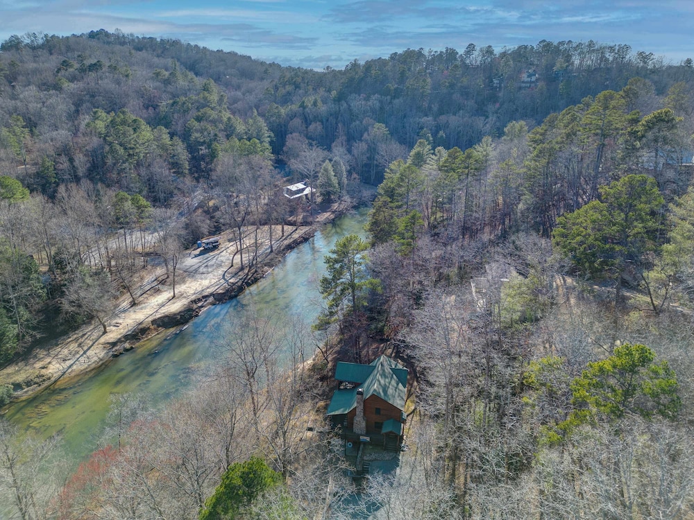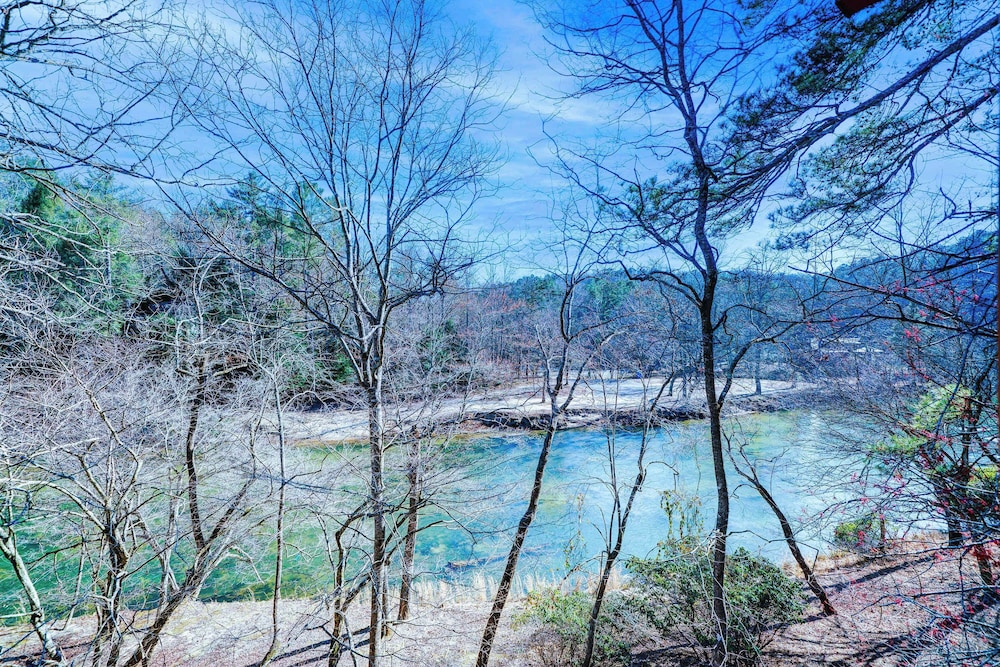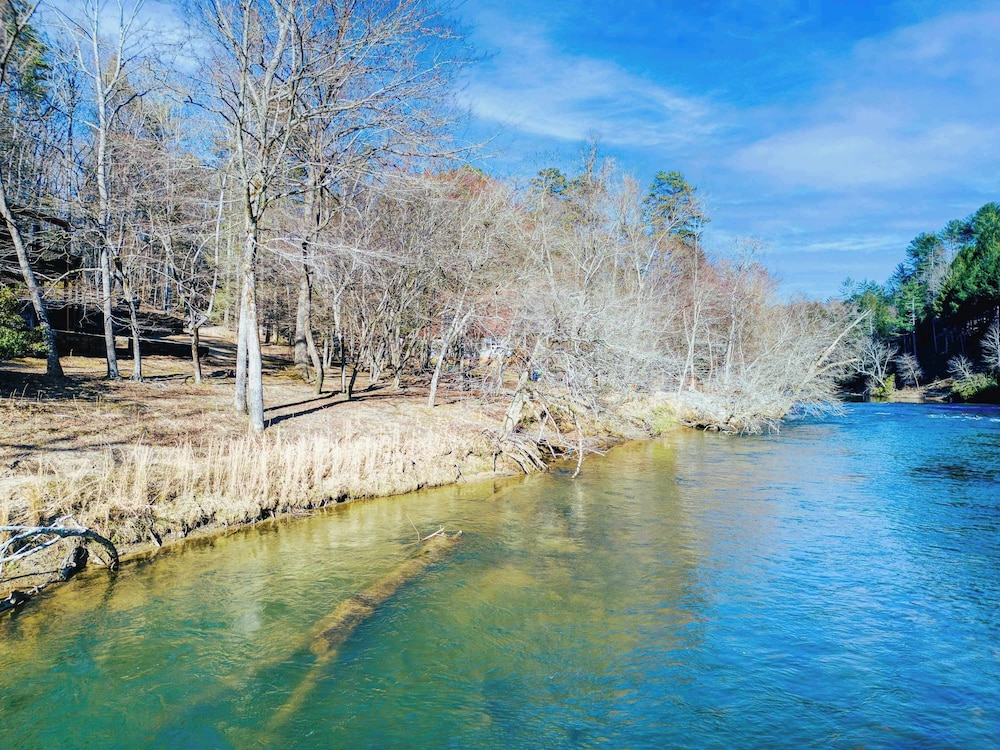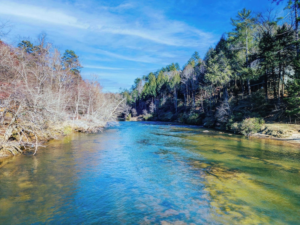 New! Riverfront Retreat Sleeps 12 Ellijay