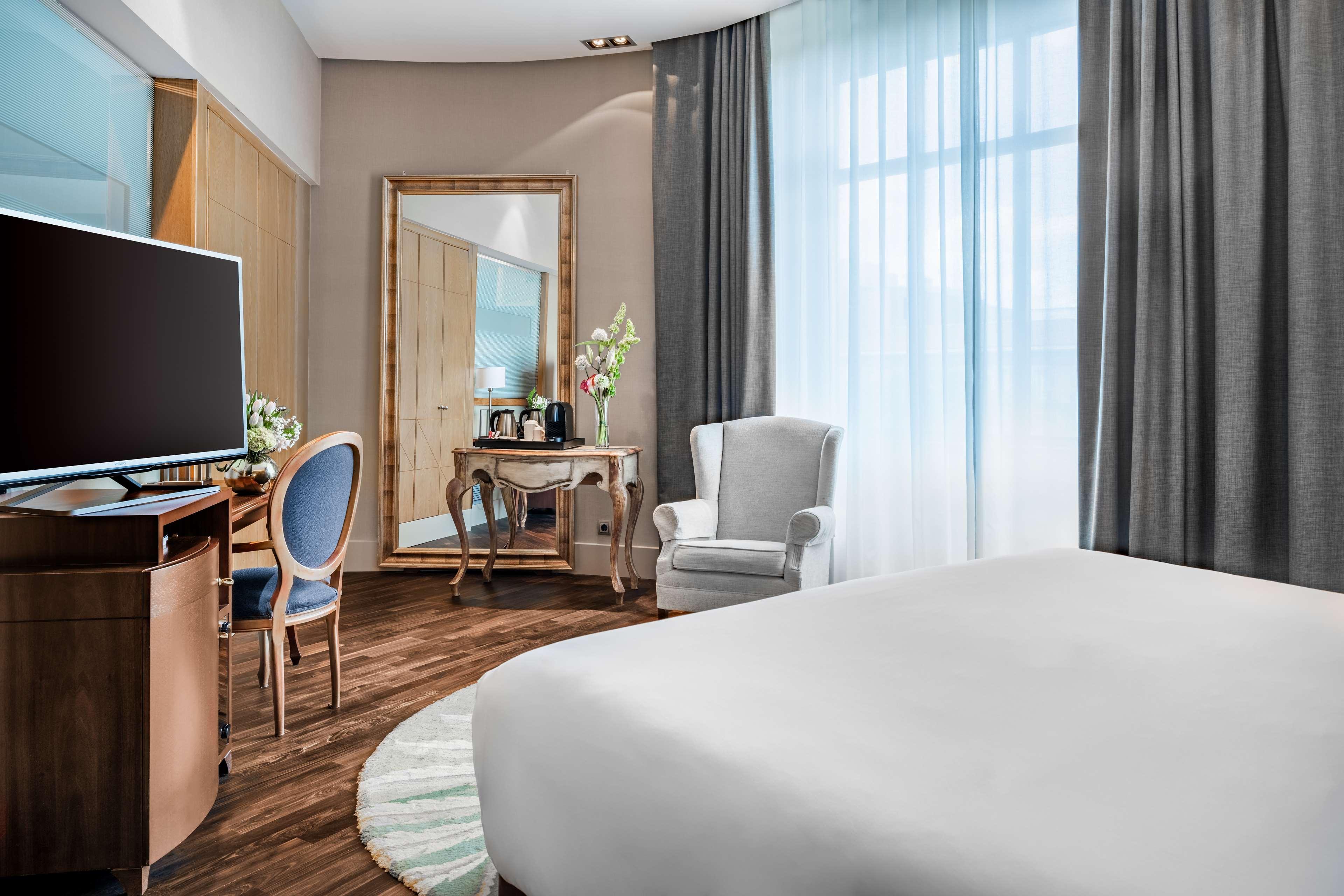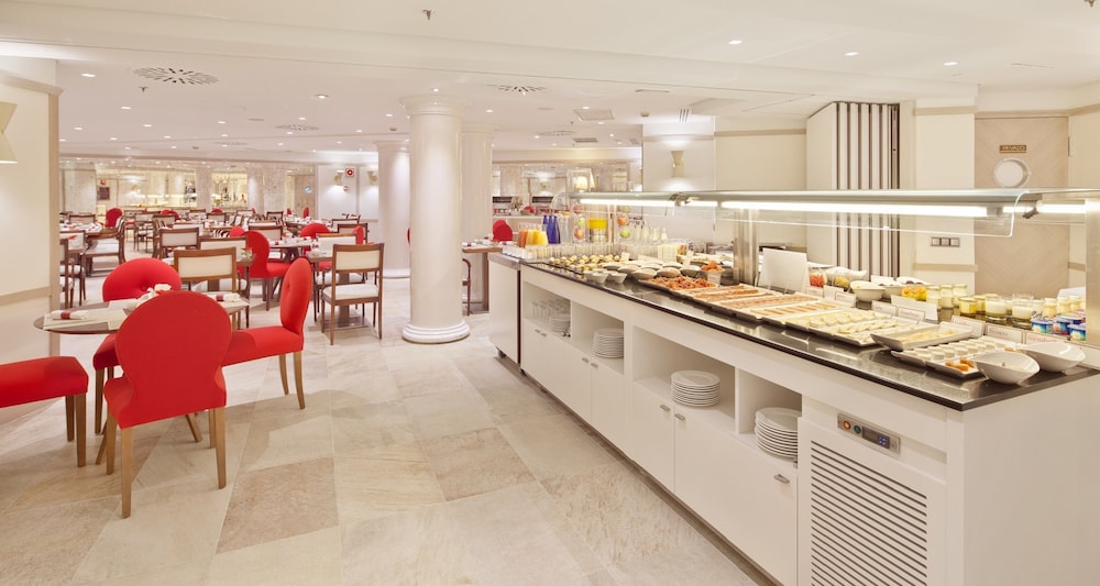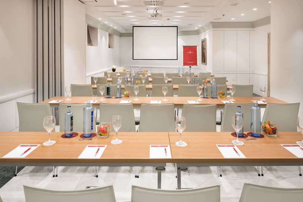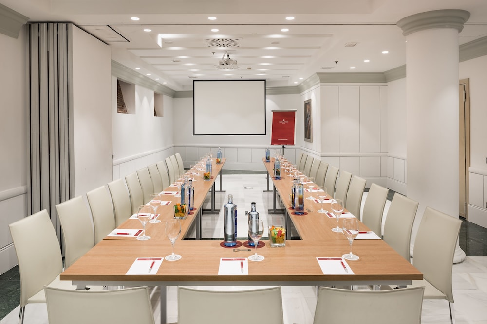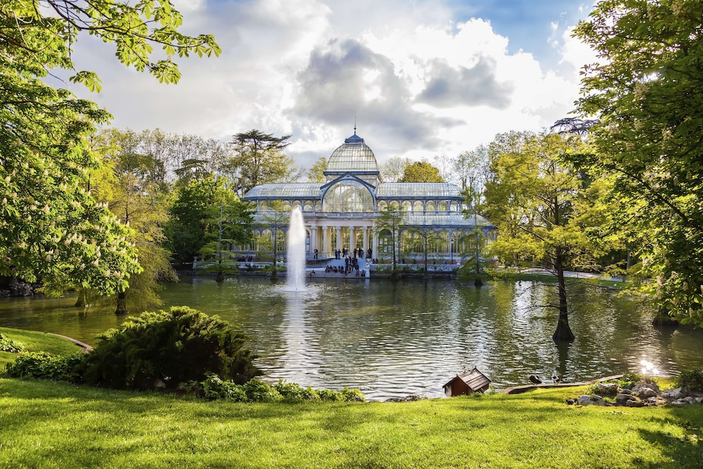 NH Collection Madrid Paseo del Prado is a luxury hotel located in the heart of Madrid's art triangle, across from the Prado, Reina Sofía, and Thyssen museums. The hotel is housed in a historic Neo-Baroque palace, with some rooms offering views of the Neptune Fountain. Guest rooms feature handmade carpets, beautiful paintings, free Wi-Fi, tea and coffee making facilities, minibars, flat-screen TVs, and private bathrooms with rainfall showerheads and complimentary toiletries. Connecting rooms are available. A buffet breakfast (fee applies) is served daily, and the hotel boasts a tapas bar with a wide selection of wines and al fresco seating, offering tapas creations by Michelin-starred chef Paco Roncero, as well as a tea room with a unique Suite & Tea service. Amenities include a rooftop gym with city views, a 24-hour front desk, multilingual staff, dry cleaning/laundry services, concierge services, room service (limited hours), and meeting rooms. The hotel is conveniently located near Banco de España and Atocha stations, providing easy access to the airport and other parts of the city. Major attractions such as Gran Via and Puerta del Sol are within walking distance.