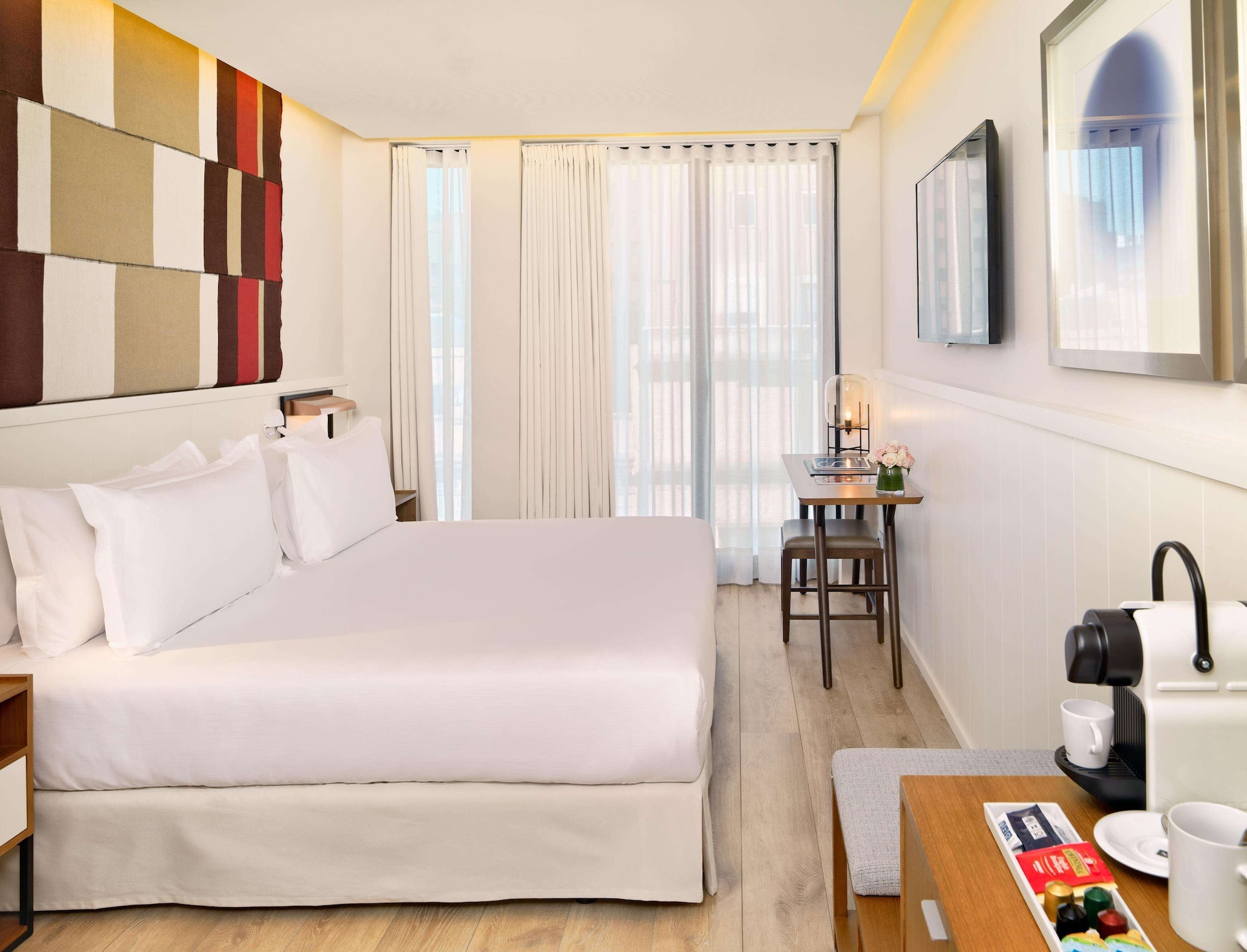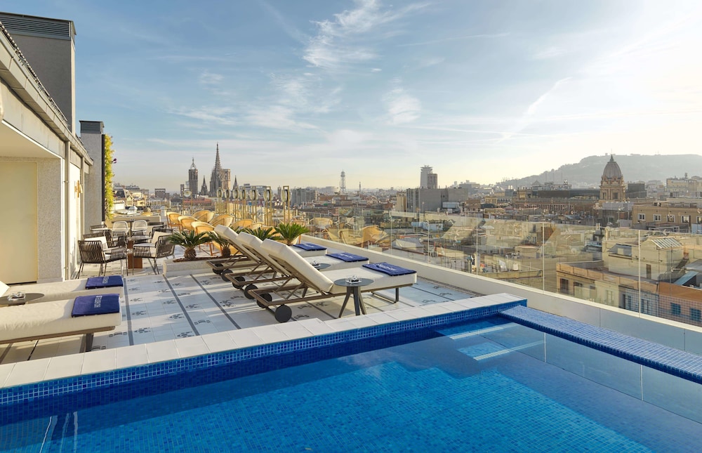 Centrally located in Barcelona, H10 Cubik is within walking distance of Palau de la Musica Catalana, Passeig de Gracia, and Plaça de Catalunya. This hotel offers complimentary wireless internet access, concierge services, and a television in a common area. Guests can take advantage of the complimentary shuttle to nearby shops. Featured amenities include a 24-hour business center, complimentary newspapers in the lobby, and dry cleaning/laundry services. The hotel has 3 meeting rooms available for events, and self-parking is available onsite (subject to charges). Guests can enjoy the outdoor pool, rooftop terrace, restaurant, 2 coffee shops/cafés, room service (during limited hours), poolside bar, and 2 bars/lounges. Cooked-to-order breakfasts are available daily from 7 AM to 11 AM for a fee. The 101 guestrooms feature minibars, espresso makers, pillowtop beds with down comforters, flat-screen televisions with digital programming, and private bathrooms with showers, rainfall showerheads, and designer toiletries. The hotel also offers a fitness center, solarium, ticket service, and tours. Airport transportation can be arranged.