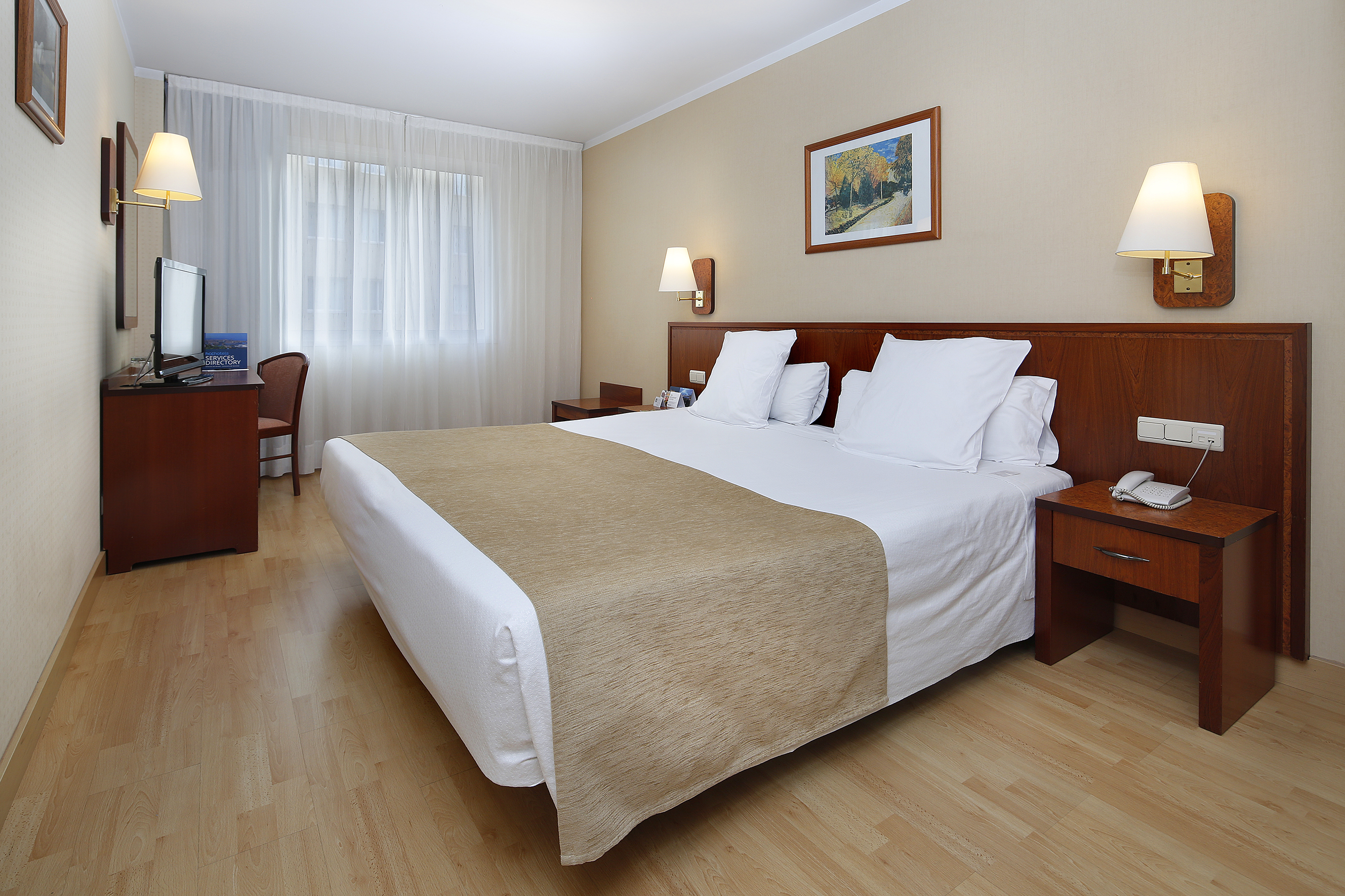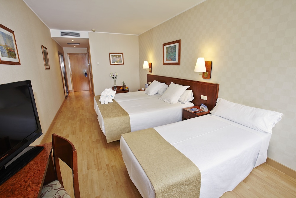 Hotel HCC MontBlanc offers 157 air-conditioned guest rooms with minibars and flat-screen TVs with satellite programming. Each room includes complimentary Wi-Fi, a private bathroom with bathtub or shower, complimentary toiletries, and a hairdryer. Additional amenities include safes and desks, and daily housekeeping. Onsite amenities include a seasonal outdoor pool, a terrace, a restaurant (El Raco del Montblanc) serving Mediterranean cuisine with a bar/lounge, room service (limited hours), a poolside bar, a business center, complimentary newspapers in the lobby, dry cleaning/laundry services, and self-parking (fee applies). Buffet breakfast is available daily (7 AM - 11 AM, fee applies). The hotel also features concierge services, wedding services, and 3,552 square feet of event space including a conference center and meeting rooms. The hotel is centrally located in Barcelona, a 3-minute walk from Palau de la Música Catalana and a 6-minute walk from Plaça de Catalunya. Nearby attractions include El Corte Ingles, Tivoli Theatre, La Rambla, and Barcelona Cathedral (all within 0.3 miles). Barcelona El Prat Airport (BCN) is 10.6 miles away.