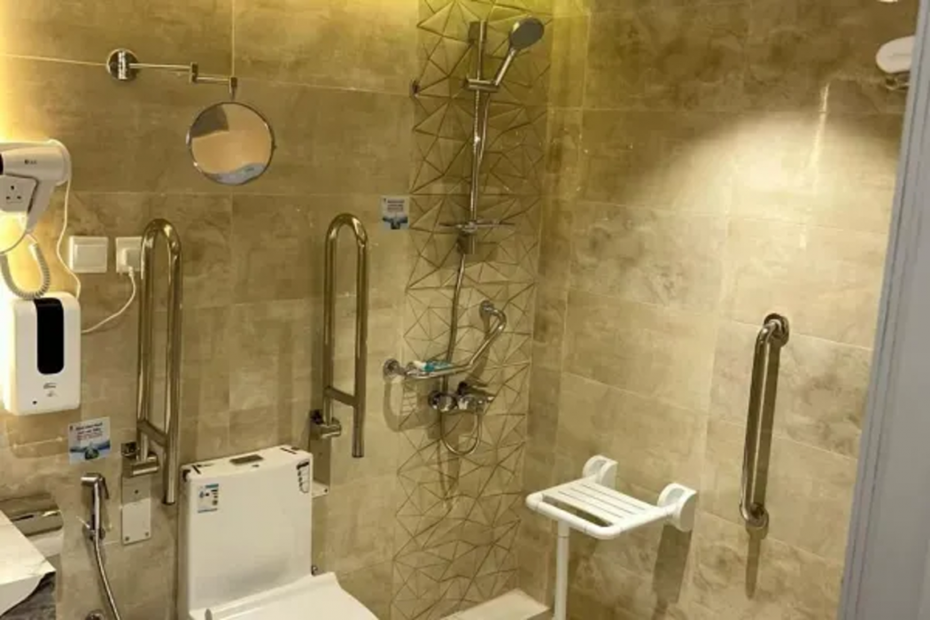 Room features air conditioning, Wi-Fi, TV, telephone, hairdryer, and bathroom with shower.