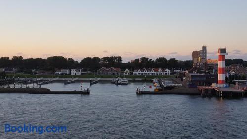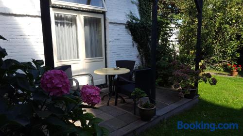 Located in a former parsonage in the center of Hoek van Holland, Kuiperduin is only 15 minutes’ walk from the beach. It features free Wi-Fi and a garden with terrace. Each of the rooms at Hotel Kuiperduin are equipped with cable TV and coffee and tea making facilities. Guests can make use of the communal lounge which overlooks the garden and has a TV, DVD player and self-service bar. The ferry terminal to Harwich and Hoek van Holland Railway Station are both 10 minutes’ walk from Kuiperduin Hotel. Free public parking is available on site.