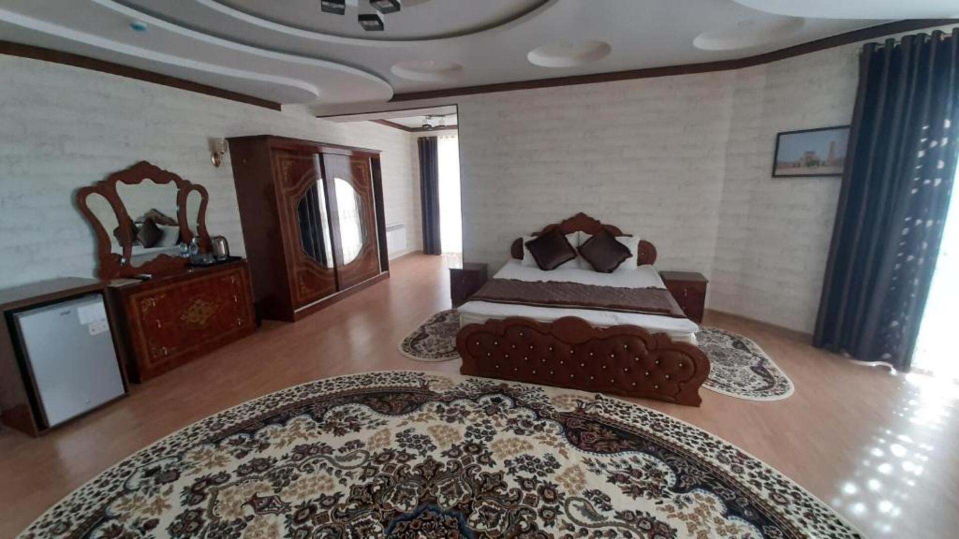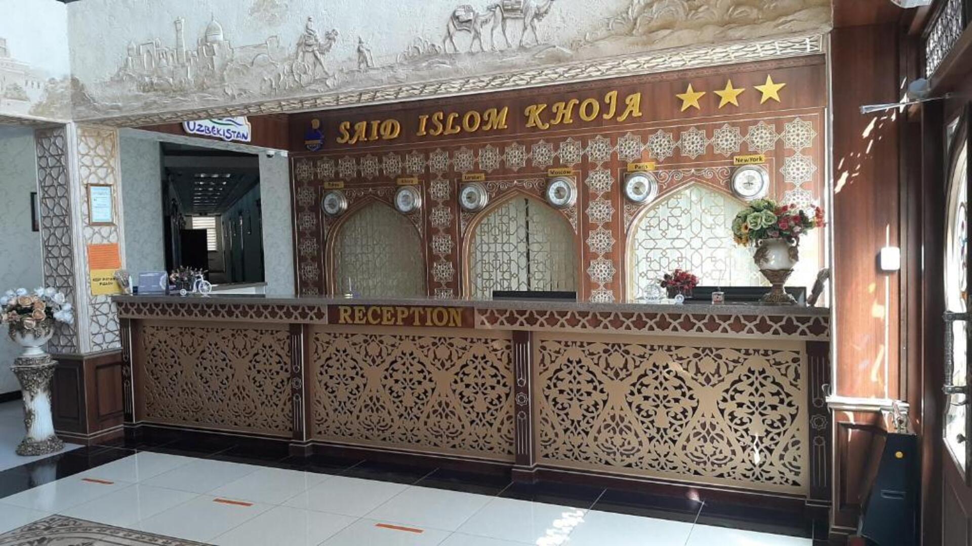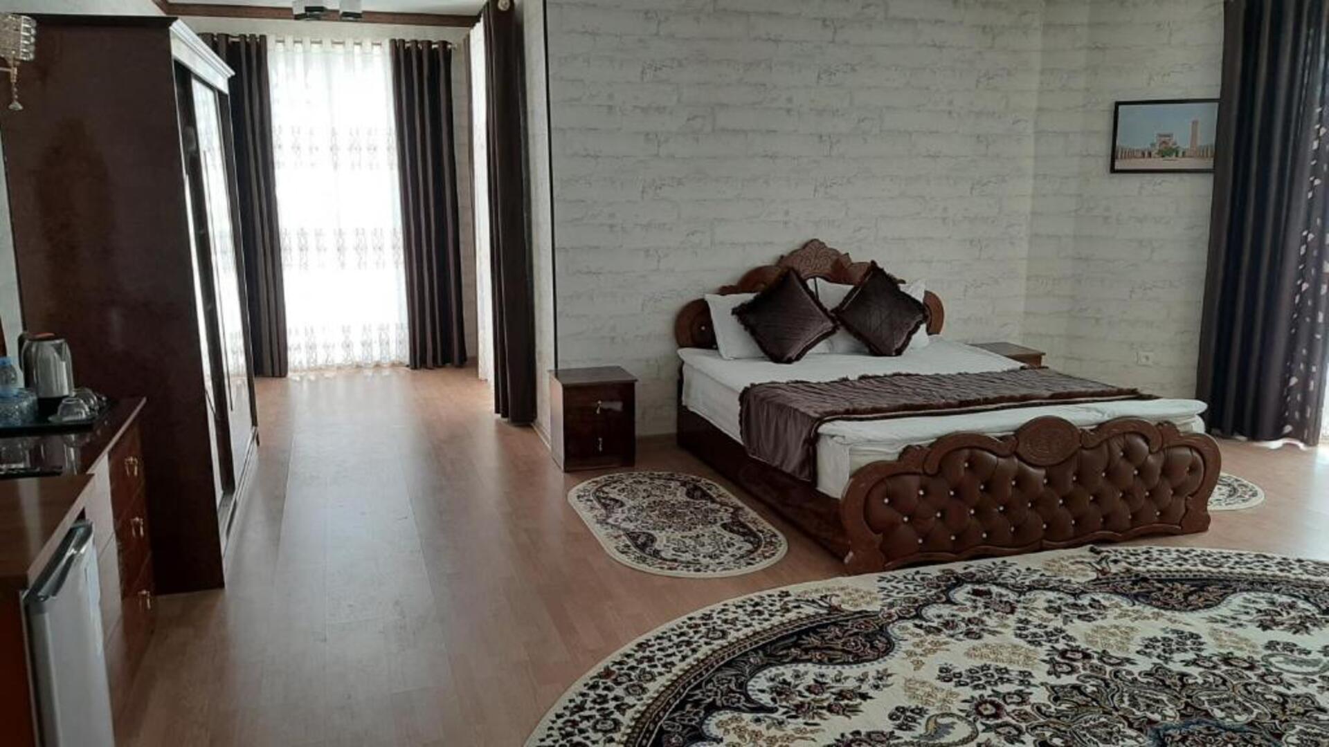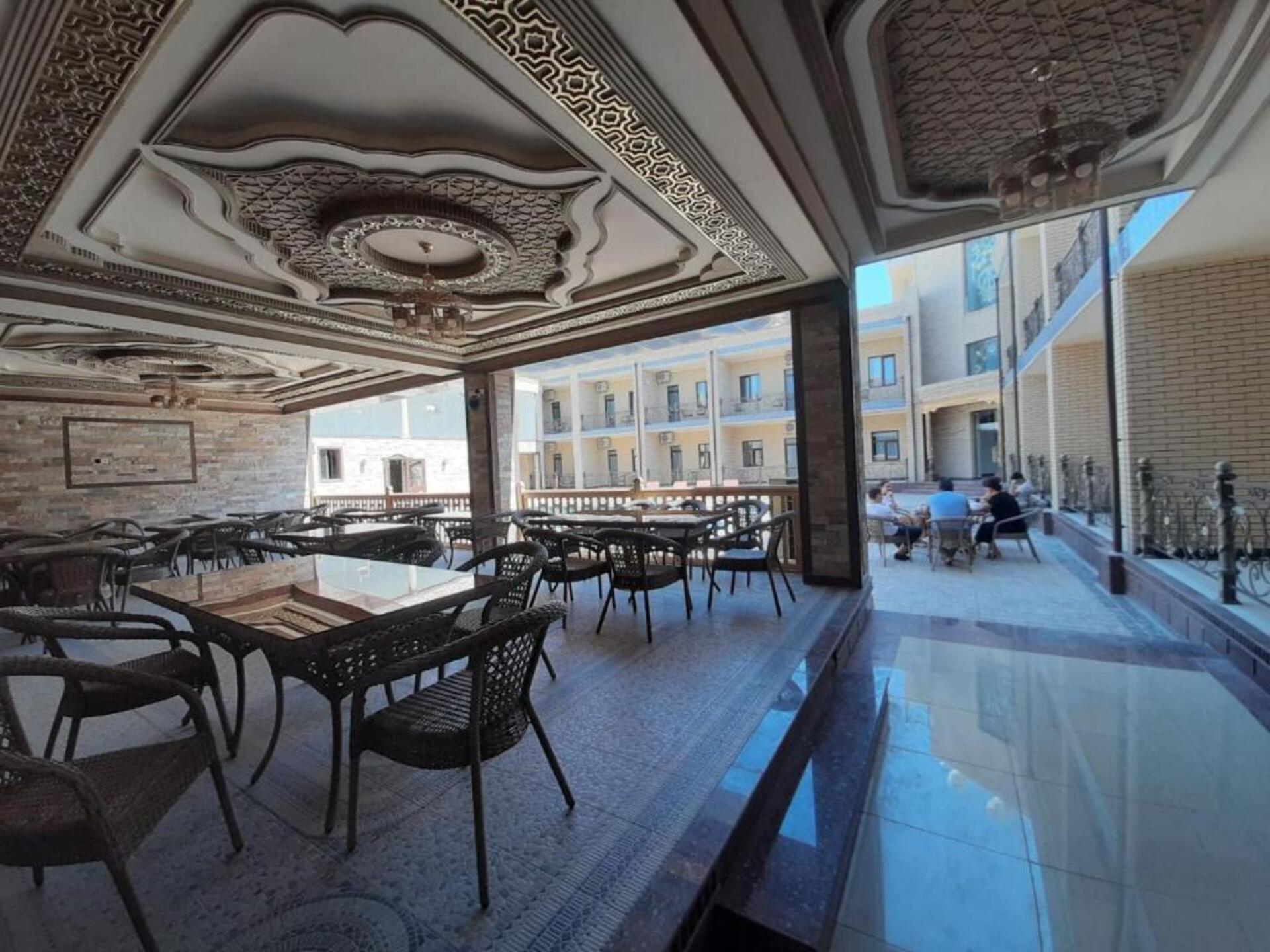 The hotel Said Islom Khoja Hotel is situated approximately 37 km from the airport. The halal hotel has a 24h reception, a lobby, Wi-Fi, internet access, parking spaces as well as a TV lounge with satellite TV. At the pool, deck chairs are available for free. You can store your valuables in the safe, and your luggage in the hotels storage room. For very young guests, kids chairs and cots can be provided. There is also a laundry and ironing service. Ironing equipment can also be borrowed at the hotel. For your comfort there is a concierge service. The energy supply is 220 Volts. For conventions and other business meetings, the hotel offers a (auditorium-style) conference area with printer, scanner as well as internet access. In your hotel, a lot of focus is placed on sustainability. This includes among others the provision of soap and shampoo dispensers. Euro/Master Card and Visa are accepted as means of payment. Catering As catering services the hotel offers breakfast only. Breakfast is offered from the buffet. As part of the all-inclusive service, water (24h) is available around the clock and at no extra charge. Your physical well-being is catered for by the cafeteria. The drinks menu of the hotel includes water and coffee and tea. Distances