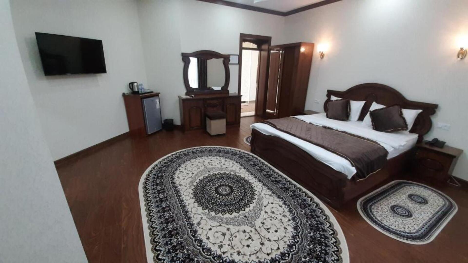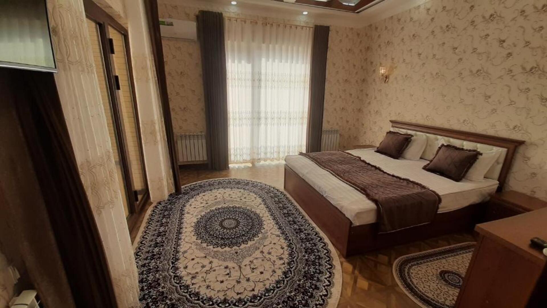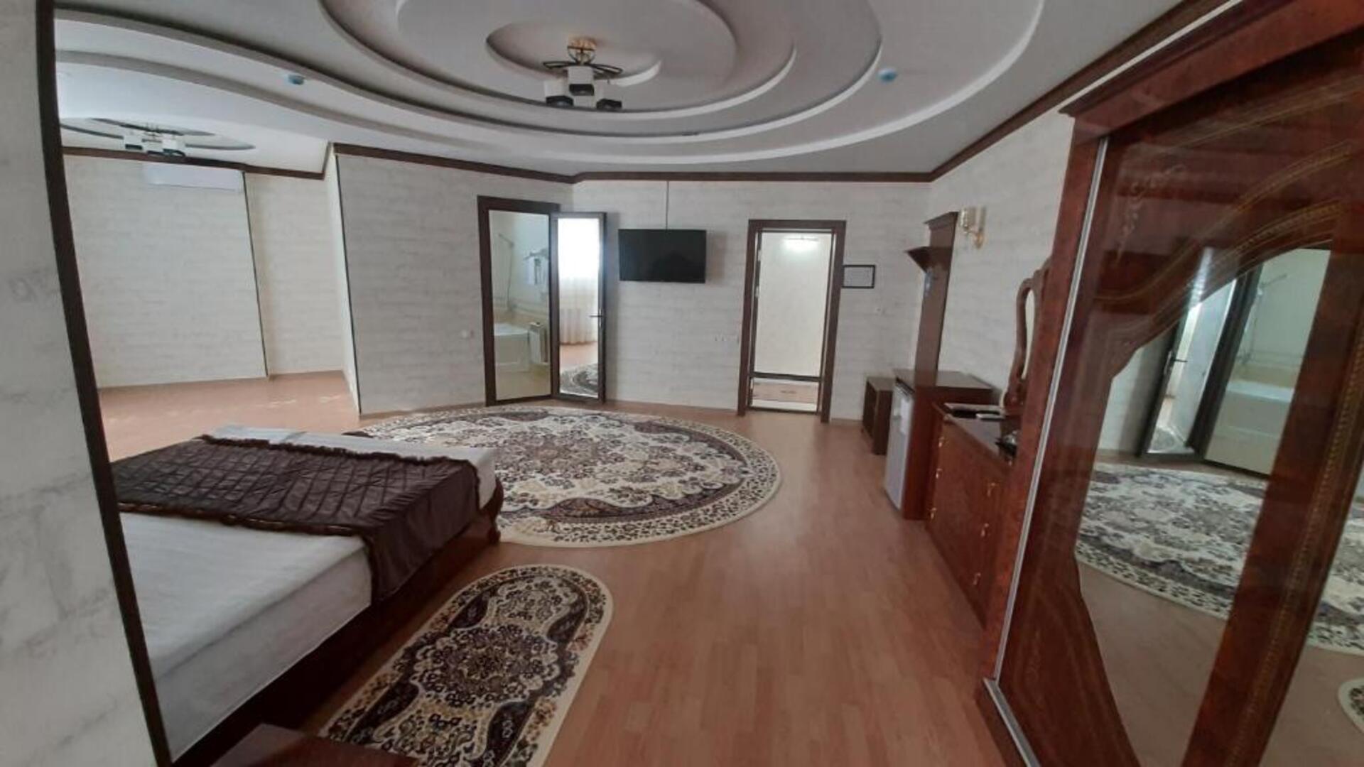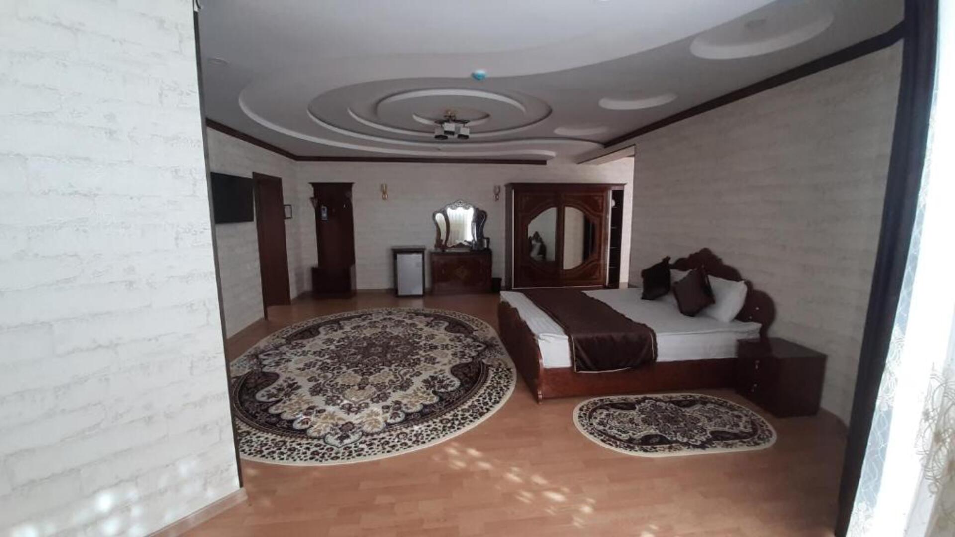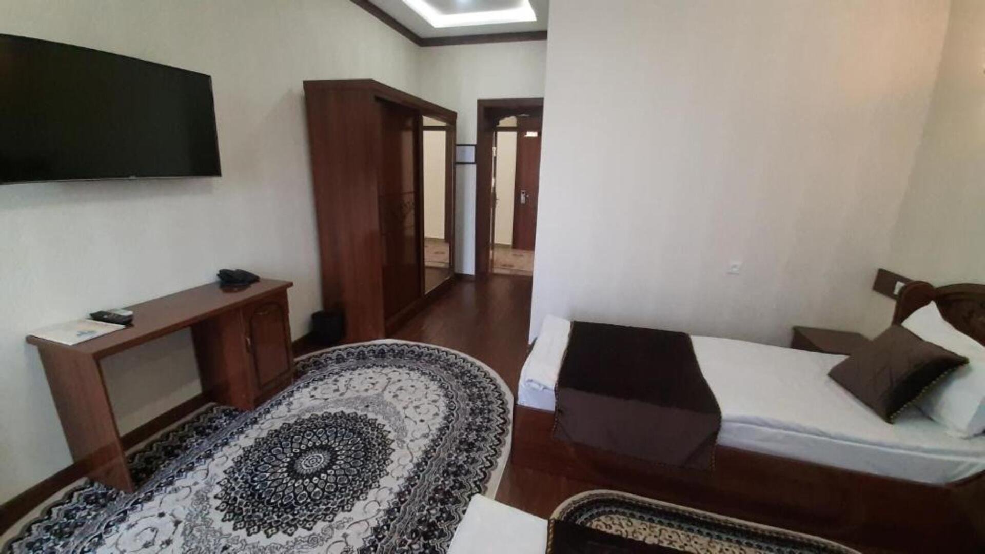 The hotel Said Islom Khoja Hotel is situated approximately 37 km from the airport. The halal hotel has a 24h reception, a lobby, Wi-Fi, internet access, parking spaces as well as a TV lounge with satellite TV. At the pool, deck chairs are available for free. You can store your valuables in the safe, and your luggage in the hotels storage room. For very young guests, kids chairs and cots can be provided. There is also a laundry and ironing service. Ironing equipment can also be borrowed at the hotel. For your comfort there is a concierge service. The energy supply is 220 Volts. For conventions and other business meetings, the hotel offers a (auditorium-style) conference area with printer, scanner as well as internet access. In your hotel, a lot of focus is placed on sustainability. This includes among others the provision of soap and shampoo dispensers. Euro/Master Card and Visa are accepted as means of payment. Catering As catering services the hotel offers breakfast only. Breakfast is offered from the buffet. As part of the all-inclusive service, water (24h) is available around the clock and at no extra charge. Your physical well-being is catered for by the cafeteria. The drinks menu of the hotel includes water and coffee and tea. Distances