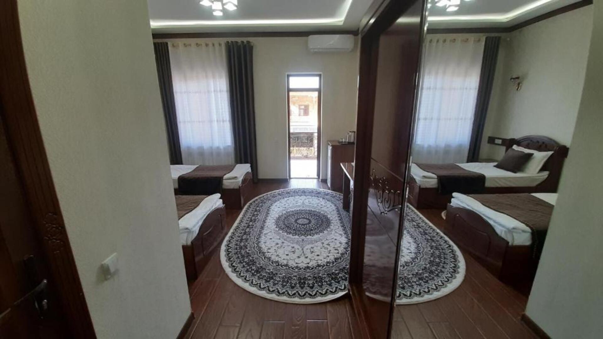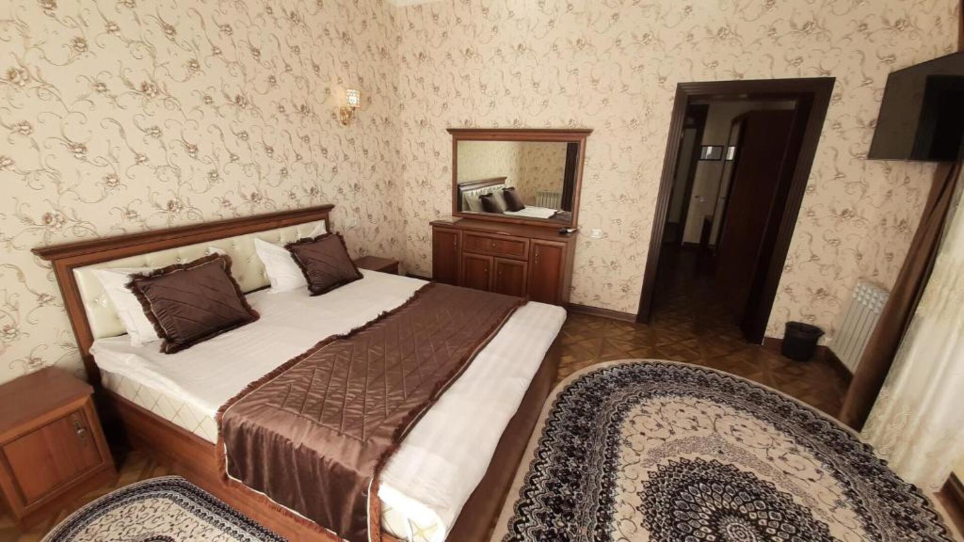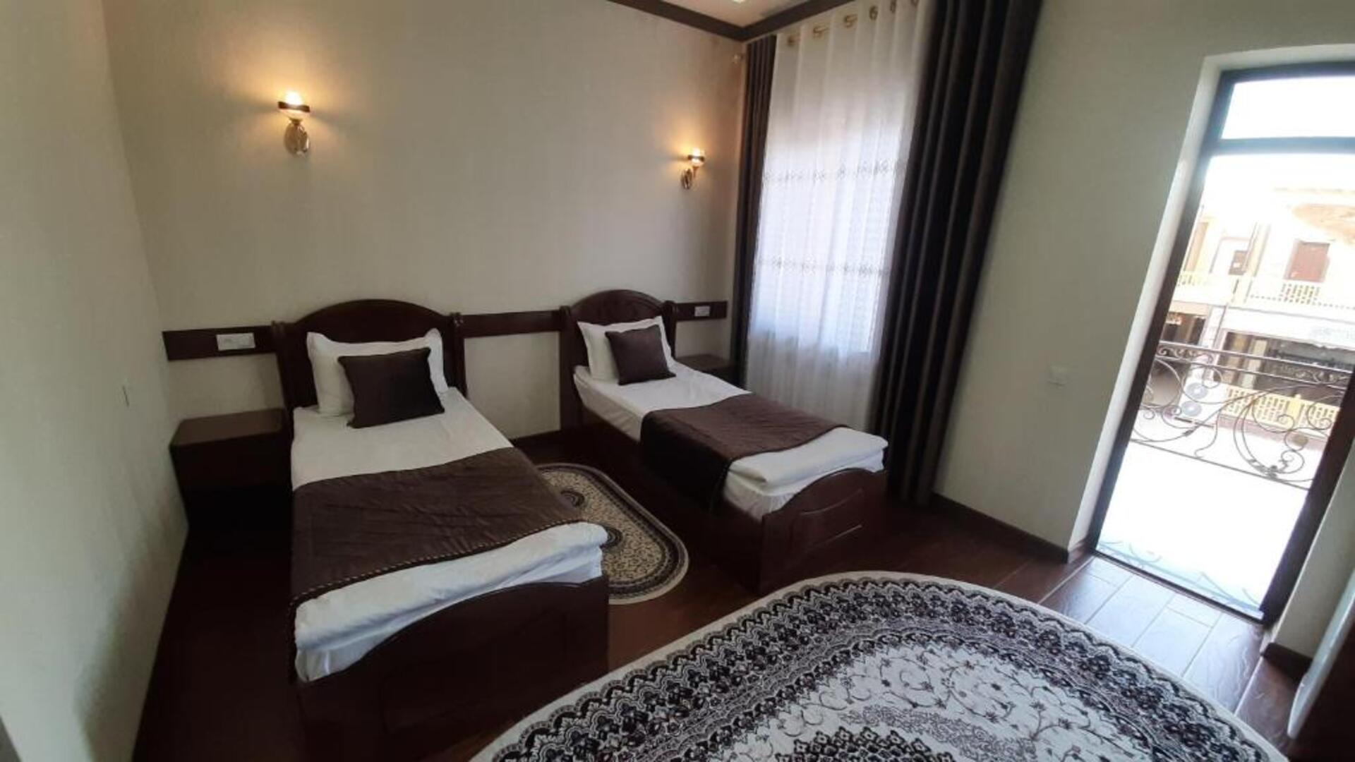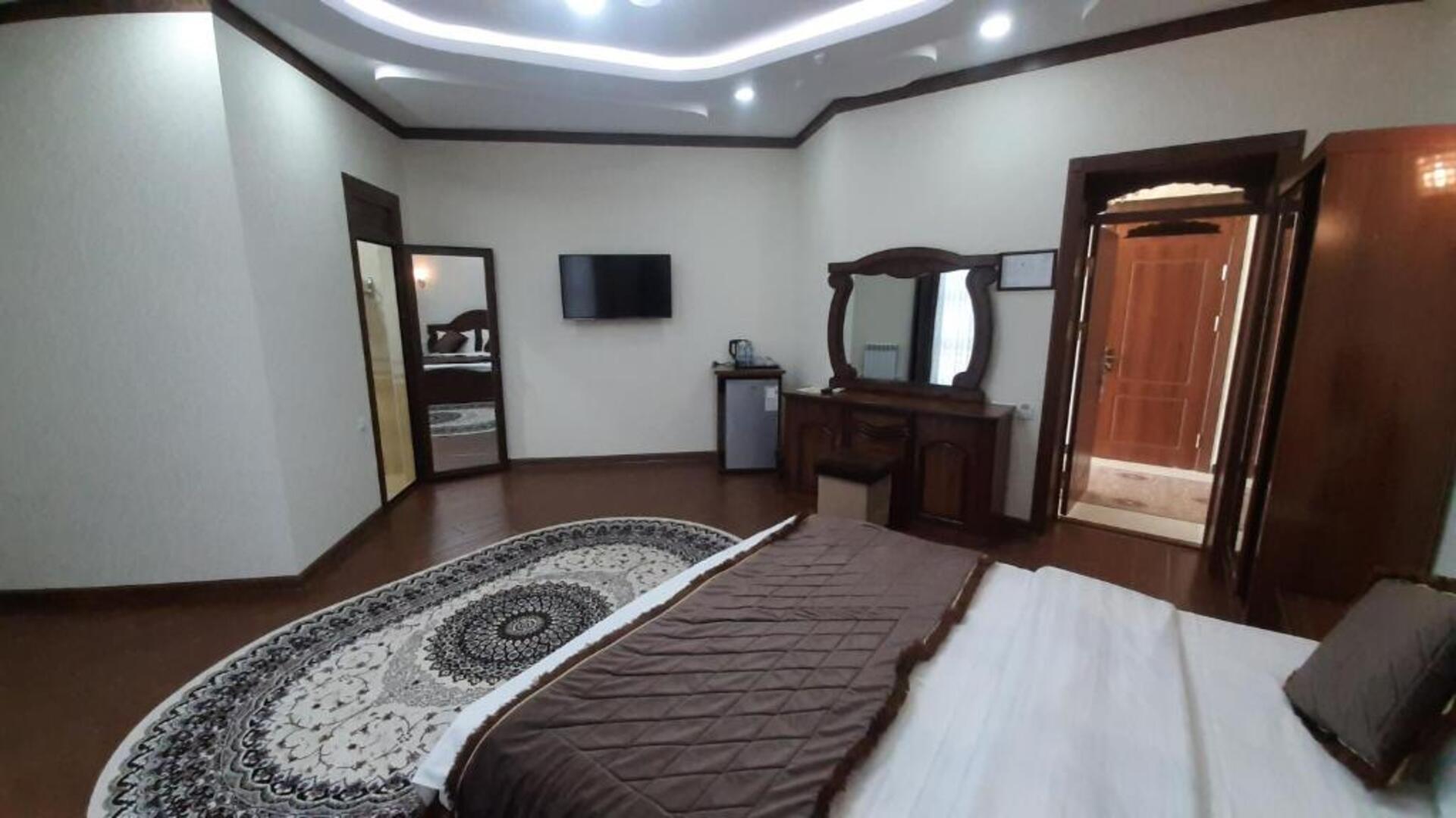 The hotel Said Islom Khoja Hotel is situated approximately 37 km from the airport. The halal hotel has a 24h reception, a lobby, Wi-Fi, internet access, parking spaces as well as a TV lounge with satellite TV. At the pool, deck chairs are available for free. You can store your valuables in the safe, and your luggage in the hotels storage room. For very young guests, kids chairs and cots can be provided. There is also a laundry and ironing service. Ironing equipment can also be borrowed at the hotel. For your comfort there is a concierge service. The energy supply is 220 Volts. For conventions and other business meetings, the hotel offers a (auditorium-style) conference area with printer, scanner as well as internet access. In your hotel, a lot of focus is placed on sustainability. This includes among others the provision of soap and shampoo dispensers. Euro/Master Card and Visa are accepted as means of payment. Catering As catering services the hotel offers breakfast only. Breakfast is offered from the buffet. As part of the all-inclusive service, water (24h) is available around the clock and at no extra charge. Your physical well-being is catered for by the cafeteria. The drinks menu of the hotel includes water and coffee and tea. Distances