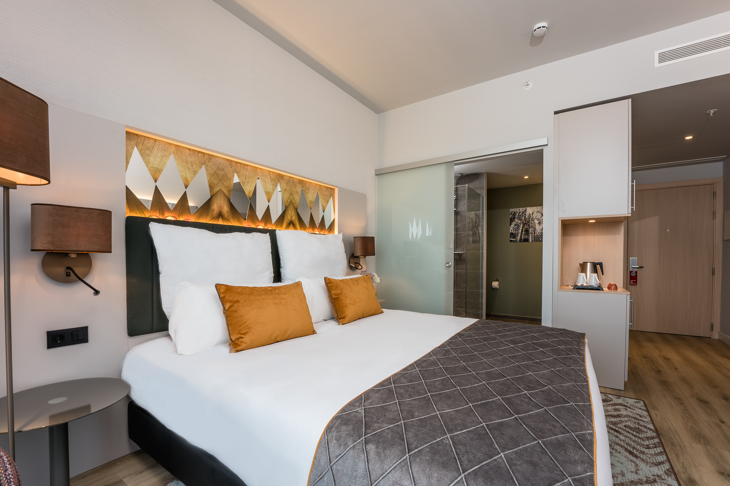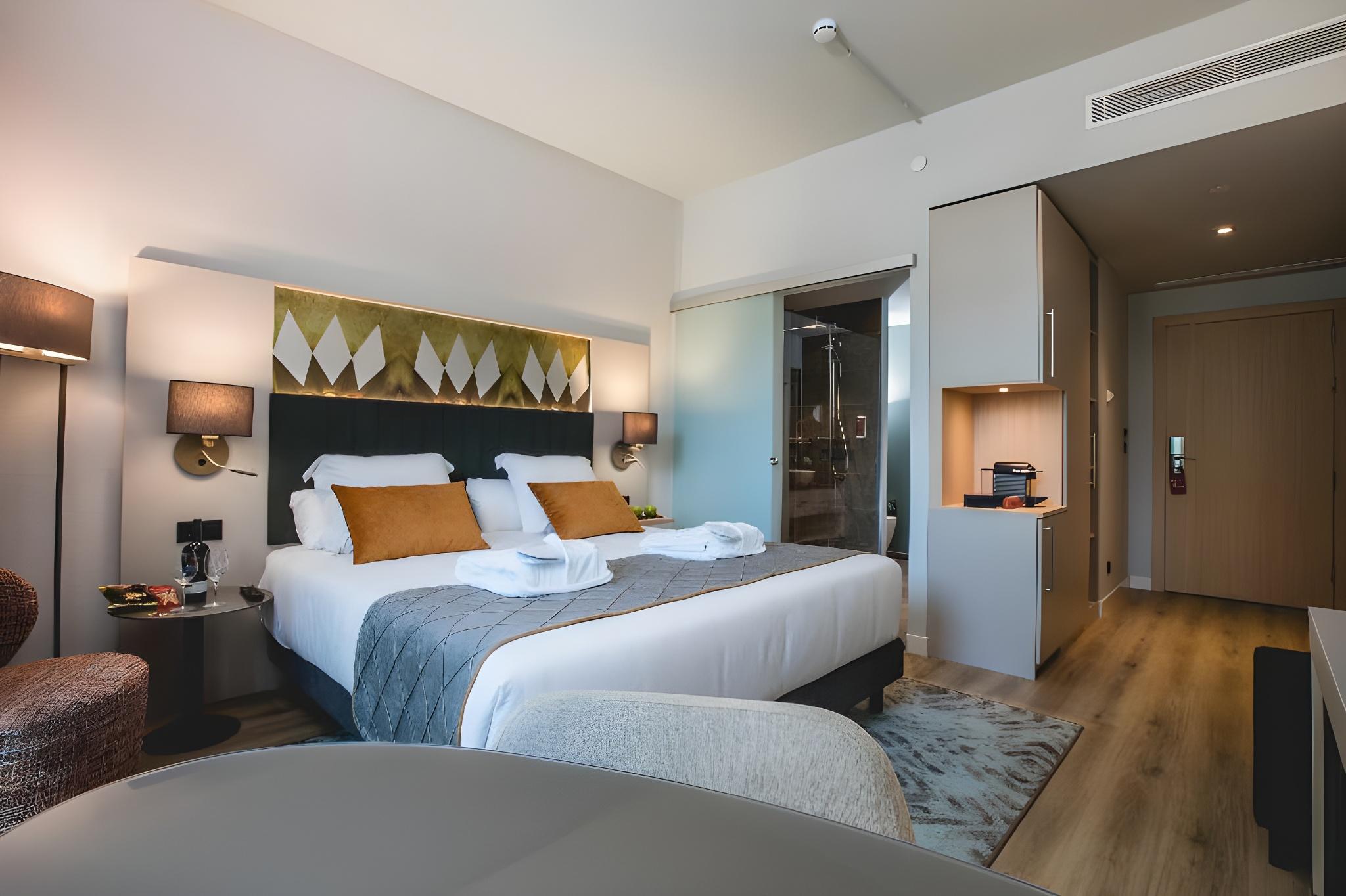 Leonardo Royal Hotel Barcelona Fira is located in Barcelona's Sants-Montjuïc district, near the Fira Barcelona Gran Via and with good metro connections to the city center. The hotel offers air-conditioned rooms with minibars, flat-screen televisions with cable, phones, safes, and desks. Bathrooms include bathtubs or showers, complimentary toiletries, and hair dryers. Guests can enjoy a breakfast buffet (fee applies), meals at the restaurant, and drinks at the bar. A coffee shop/cafe and vending machines are also available. The hotel features a rooftop infinity pool with city views, a fitness center, complimentary wireless internet access, a business center, complimentary newspapers in the lobby, and a 24-hour front desk. Self-parking is available (charges apply). Laundry service and daily housekeeping are provided. The hotel is smoke-free. Some rooms may include a separate living room, balcony or terrace, refrigerator, bottled water, and coffee/tea making facilities.