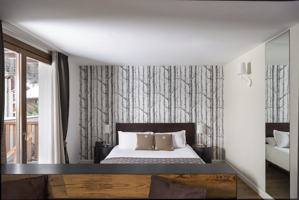 Located in La Thuile, Montana Lodge & Spa, by R Collection Hotels, is a 5-star hotel offering accommodation with a restaurant, shared lounge, terrace, and garden. It is near the La Thuile Ski Area and Les Suches Cable Car. The hotel features a spa and wellness center with an indoor pool, fitness center, sauna, hot tub, and hammam. Guests have access to complimentary wired and wireless internet, concierge services, ski storage, and a complimentary ski shuttle. Featured amenities include a 24-hour front desk and business center, and limo/town car service. The hotel offers 196 square meters of space consisting of conference space and a meeting room. Guests may use a roundtrip airport shuttle for a surcharge, and self parking is available onsite for a surcharge. A complimentary continental breakfast is served daily. The hotel has 55 individually furnished guestrooms featuring iPod docking stations, flat-screen televisions with satellite programming, laptop-compatible safes, and desks. Bathrooms include showers with rainfall showerheads and designer toiletries. Guests can enjoy Italian cuisine at the on-site restaurant, which features a bar/lounge, or utilize room service during limited hours. Activities such as hiking, skiing, and fishing are available in the area.