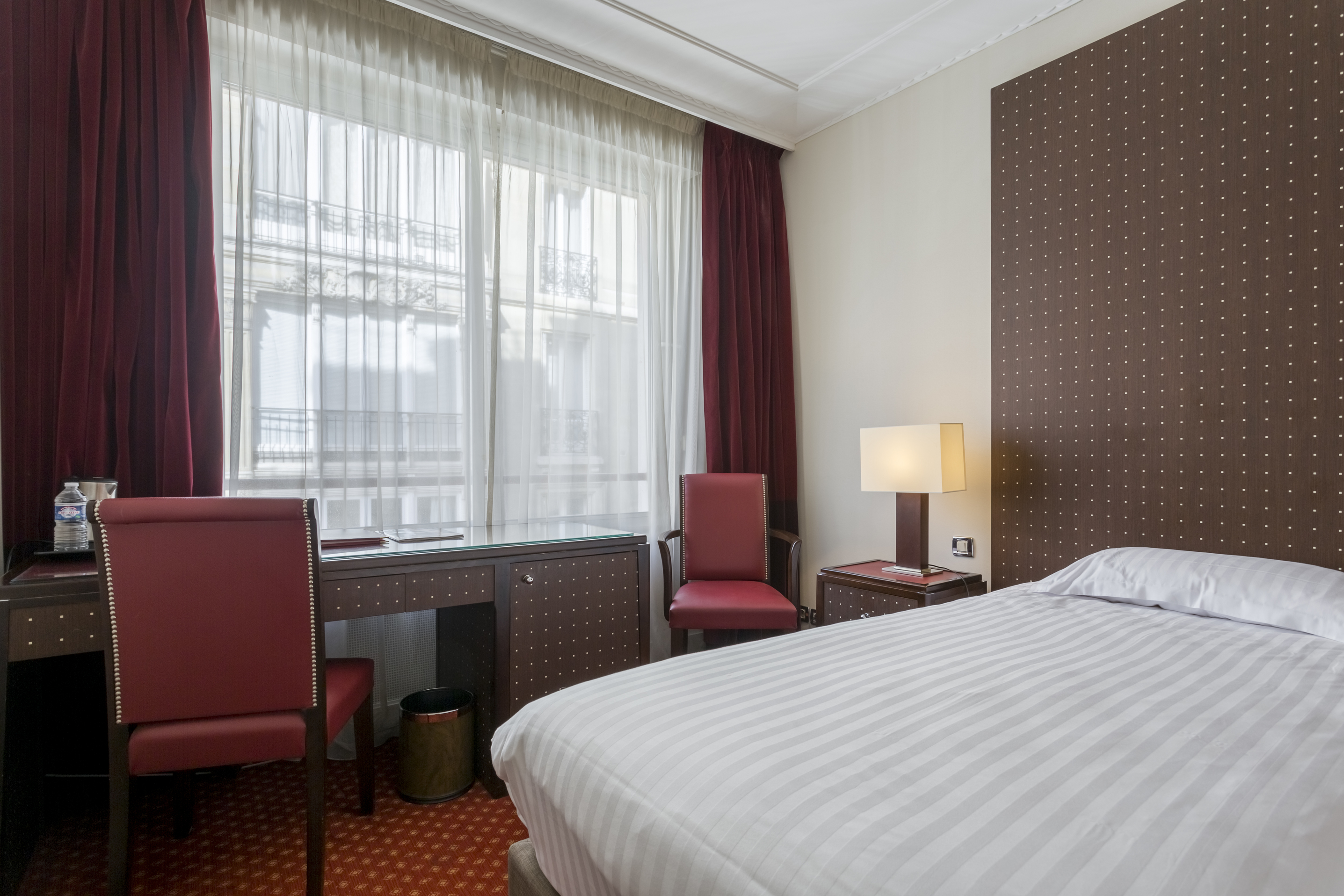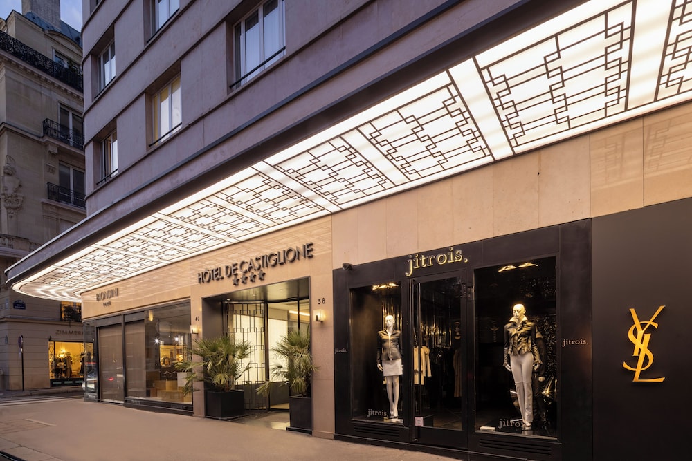 Hotel de Castiglione is a 4-star hotel located on Rue du Faubourg Saint-Honoré, a quiet and secure street in Paris' 8th arrondissement, near luxury boutiques and ambassadorial residences. It's 250 meters from Place de la Madeleine, 300 meters from Place de la Concorde, and close to the Champs-Élysées. The hotel offers 98 renovated, contemporary-style rooms with air conditioning, minibars, and espresso makers. Amenities include complimentary Wi-Fi, a 24/7 reception desk, concierge services, a business center, complimentary newspapers in the lobby, dry cleaning/laundry services, and babysitting (surcharge). A buffet breakfast is available daily (fee applies). The Concorde and Madeleine metro stations are a 5-minute walk away, and Gare Saint Lazare is a 12-minute walk. Paris Orly and Charles de Gaulle airports are 22.8 km and 33.6 km away, respectively. Rooms feature flat-screen TVs, private bathrooms with bathtubs or showers, complimentary toiletries, hair dryers, phones, safes, and desks. Some rooms may have balconies or terraces and separate living rooms. Select rooms offer coffee/tea makers and bottled water.