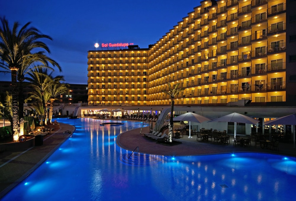 Located 200 metres from Magalluf Beach in Calvia, Sol Guadalupe features a lagoon-style pool with a hot tub, an indoor pool, and children's pools. Guests can enjoy recreational amenities including a waterslide and an arcade/game room. The hotel offers complimentary wireless internet access throughout the property, concierge services, and a 24-hour front desk. For dining, there is a restaurant with pool views offering buffet meals and show cooking, a poolside snack bar, and 2 bars/lounges. Guests can also enjoy room service during limited hours. Entertainment includes a daytime and evening program, a children's playground, and a mini club.