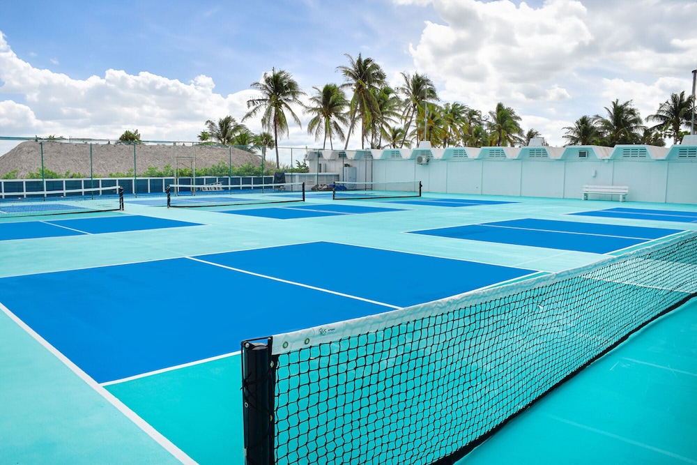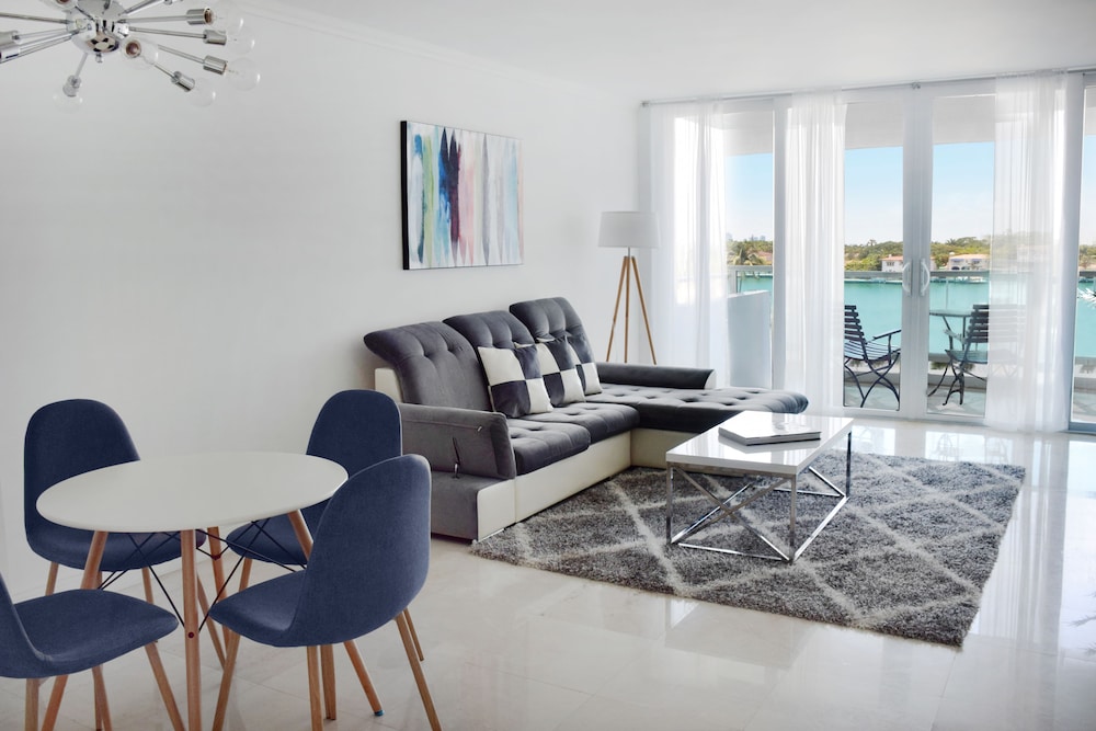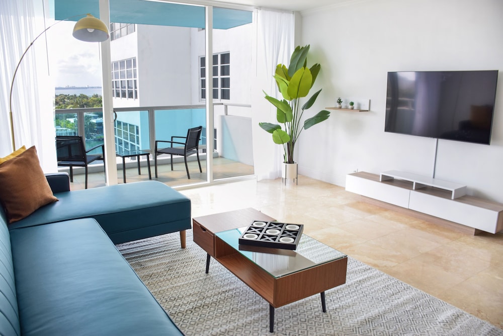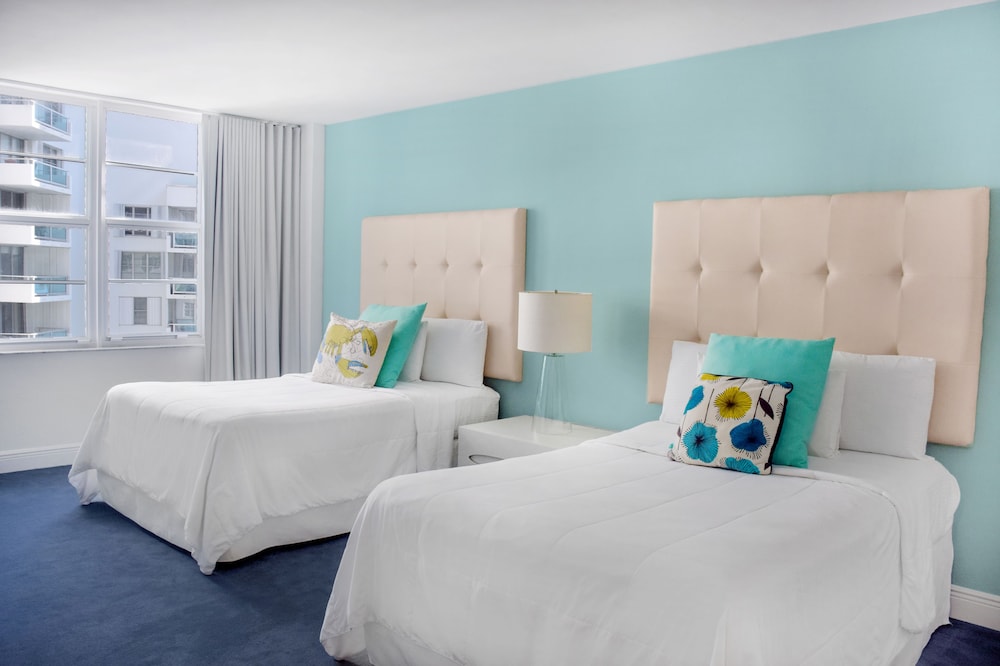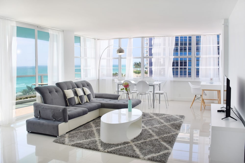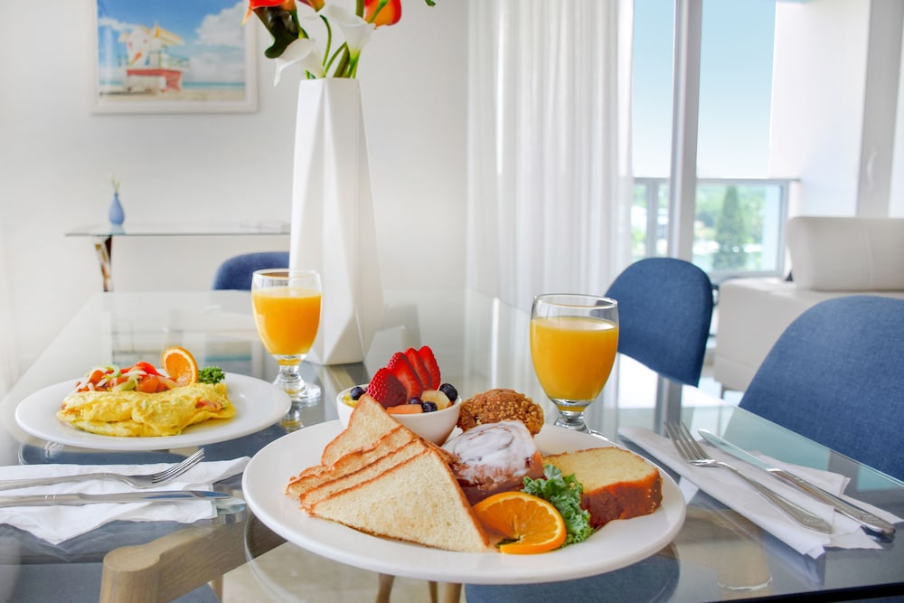 Seacoast Suites on Miami Beach, a Miami Beach (Mid Beach) all-suite hotel, offers competitively priced accommodations with full kitchens and living rooms. Suites feature breathtaking Atlantic Ocean views (oceanside suites), or bay, sunset, or city views (subject to availability). Deluxe rooms, refurbished in 2017, boast modern design and amenities. Each air-conditioned room includes a full-size refrigerator/freezer, oven, microwave, safe, 45-inch LCD TV with cable, and wired internet access. Phones with free local calls are also provided. Hotel amenities include a 24-hour front desk, concierge, valet parking, complimentary beach service, Wi-Fi, an on-site market, beach tennis courts, tiki bar, gym, beach lounge area, a small spa, an outdoor pool, an outdoor pickleball court, a fitness center, a picnic area, and a reception hall. A restaurant and bar/lounge, plus a poolside bar are available. Full breakfasts are available daily (fee applies). Additional services include limo/town car service, multilingual staff, luggage storage, and self-parking (fee applies). The hotel is minutes from Fontainebleau Miami Beach, South Beach's nightlife and dining, and upscale shopping at Bal Harbour Shops and Aventura Mall. Nearby attractions such as the Performing Arts Center, American Airlines Arena, Bayside Marketplace, and Downtown Miami are a short drive away. An area shuttle is available (surcharge). Cleaning supplies, dish soap, paper towels, condiments, food, ice cube trays, coffee, filters, and dish towels are not provided but are available at the on-site market. The hotel is approximately 1.1 km from Miami Beach Beaches, 1.2 km from Fontainebleau, and various other attractions within a 5 km radius (see detailed list below). Miami International Airport (MIA) is the preferred airport, located approximately 19.1 km from the hotel.