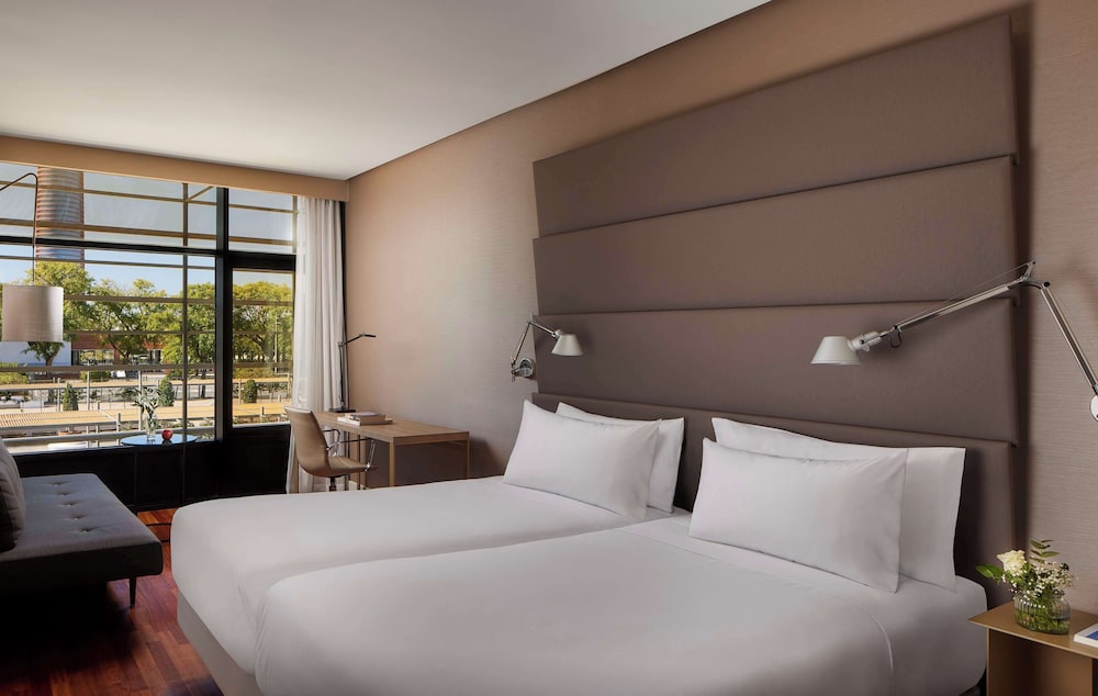The 4-star NH Sevilla Plaza de Armas hotel enjoys a central Seville location, a 7-minute walk from Santa Justa station and near the Plaza de Armas Shopping Center and Sierpes Street shopping district. Many attractions are within walking distance, including the Museum of Fine Arts (2.5km) and the Olympic Stadium (3km). The hotel features 262 rooms with contemporary design, hardwood floors, free Wi-Fi, flat-screen TVs, desks, and minibars. Junior suites offer an additional sitting area, some with Isla de la Cartuja views. A daily breakfast buffet (fee applies) is available, with made-to-order hot dishes as an option. The Tablafina restaurant serves Spanish cuisine using local produce. A rooftop pool and terrace skybar are open May-October. The hotel offers 5 meeting rooms (8-190 people), a fitness center, and a 24-hour front desk. Amenities include complimentary newspapers, dry cleaning/laundry services, and tour/ticket assistance. The hotel was renovated in summer 2019. San Pablo Airport (SVQ) is 19.8km away.