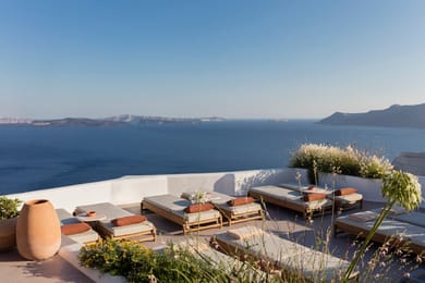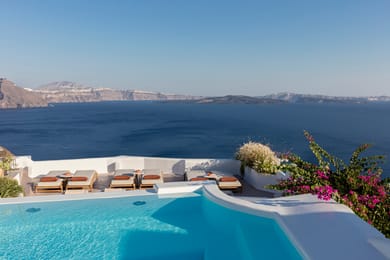 Location:Cut into the volcanic cliff face in the pretty village of Oia, Canaves Ena provides and inspiring selection of suites carved into the rock overlooking the caldera. Canaves Ena is located right in the start of the picturesque village of Oia and in a walking distance from all the restaurants, cafeterias and the shopping area.The hotel has a distance of approximately 20 minutes from the airport and port. Easy access by the hotel's shuttle bus service or luxury limousine.Architecture:Seventeenth century Canaves (cave houses carved into the rock where Santorinians used to keep wine) have been transformed into suites with an impressive view to the volcanic Caldera and the sea. All rooms and suites combine traditional Santorinian characteristics with modern facilities.Built right on the side of the cliff Canaves Oia is split in 2 sections, Canaves Ena and Canaves Oia Suites which have a distance of only 100 m from eachother. During the winter of 2011 Canaves Ena has been completely reconstructed offering contemporary, modern accommodation.Guest services:24h front desk/concierge/bell boy service, welcome drink upon arrival, room service, daily maid service/turndown service, free wireless connection,transportation from/to the port or airport, laundry service, massage treatments.Facilities / Dining:Experience dining at Canaves Oia BoutiqueHotel in one of our below options:Pool BarSnack Bar and Lunch available in our hotel' pool area. Don't forget to try the amazing Canaves Cocktails!Inifnity Bar & Bistrot RestaurantReserve for a candlit dinner in a romantic ambience right by our pool while you enjoy the magnificent view to the Aegean sea and the volcano.Wine TastingSantorini is famous for its unique wine. Let us introduce you to a selection of local wines and have the chance to taste them while watching the sunset.