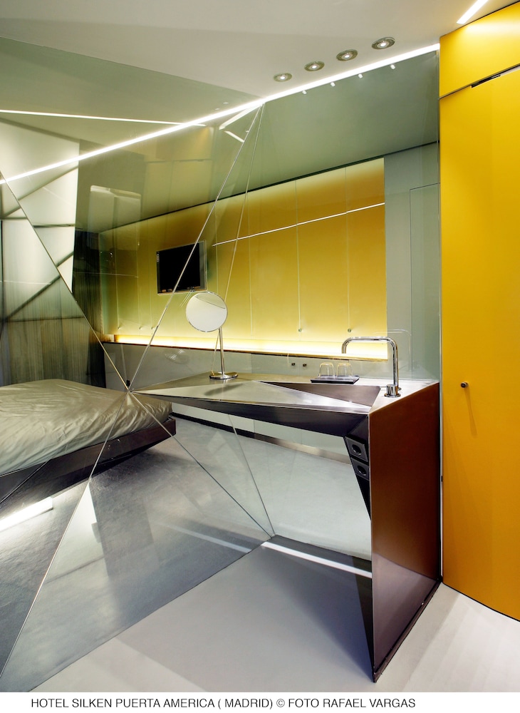 Located in a quiet residential area near Madrid's city center, Hotel Puerta América offers convenient access to transportation and attractions like the Bernabéu Stadium. The hotel features a modern restaurant serving Spanish cuisine, a terrace and garden, and a top-floor bar with city views. Each floor showcases a unique design by a different international architect. The hotel offers complimentary wired and wireless internet access, concierge services, a business center, and express check-in. Event facilities include a conference center and meeting rooms. Guests can enjoy recreational amenities including a fitness center and a seasonal outdoor pool. Dining options include two restaurants, a coffee shop/cafe, two bars/lounges, and 24-hour room service. Buffet breakfasts are available for a fee. The hotel provides taxi and car hire amenities, luggage storage, safety deposit boxes, dry cleaning, laundry service, and daily housekeeping. The air-conditioned guestrooms offer digital programming, safes, desks, complimentary toiletries, and hair dryers. Self-parking is available for a surcharge.