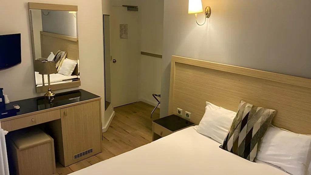 Hôtel Lebron, located in Paris's 9th arrondissement, blends modern comfort with traditional Parisian features. It is ideally situated for exploring the city, near Montmartre and a short walk from Palais Garnier and Galeries Lafayette. Cadet Metro Station is one minute away, providing direct access to various attractions. The hotel offers 42 guestrooms featuring flat-screen televisions, complimentary wireless internet access, safes, desks, and phones with free local calls. Private bathrooms include bathtubs or showers, complimentary toiletries, and hair dryers. Tea and coffee facilities are available, and minibars are available on request. The hotel features a 24-hour front desk, multilingual staff, luggage storage, a bar, and a restaurant serving menus and à la carte dishes. A buffet breakfast is available daily. Room service, laundry service, and dry cleaning are also offered. Meeting facilities are available for up to 80 people. The hotel is a non-smoking property. Paris Orly Airport (ORY) is the preferred airport, located 21.5 km away.
