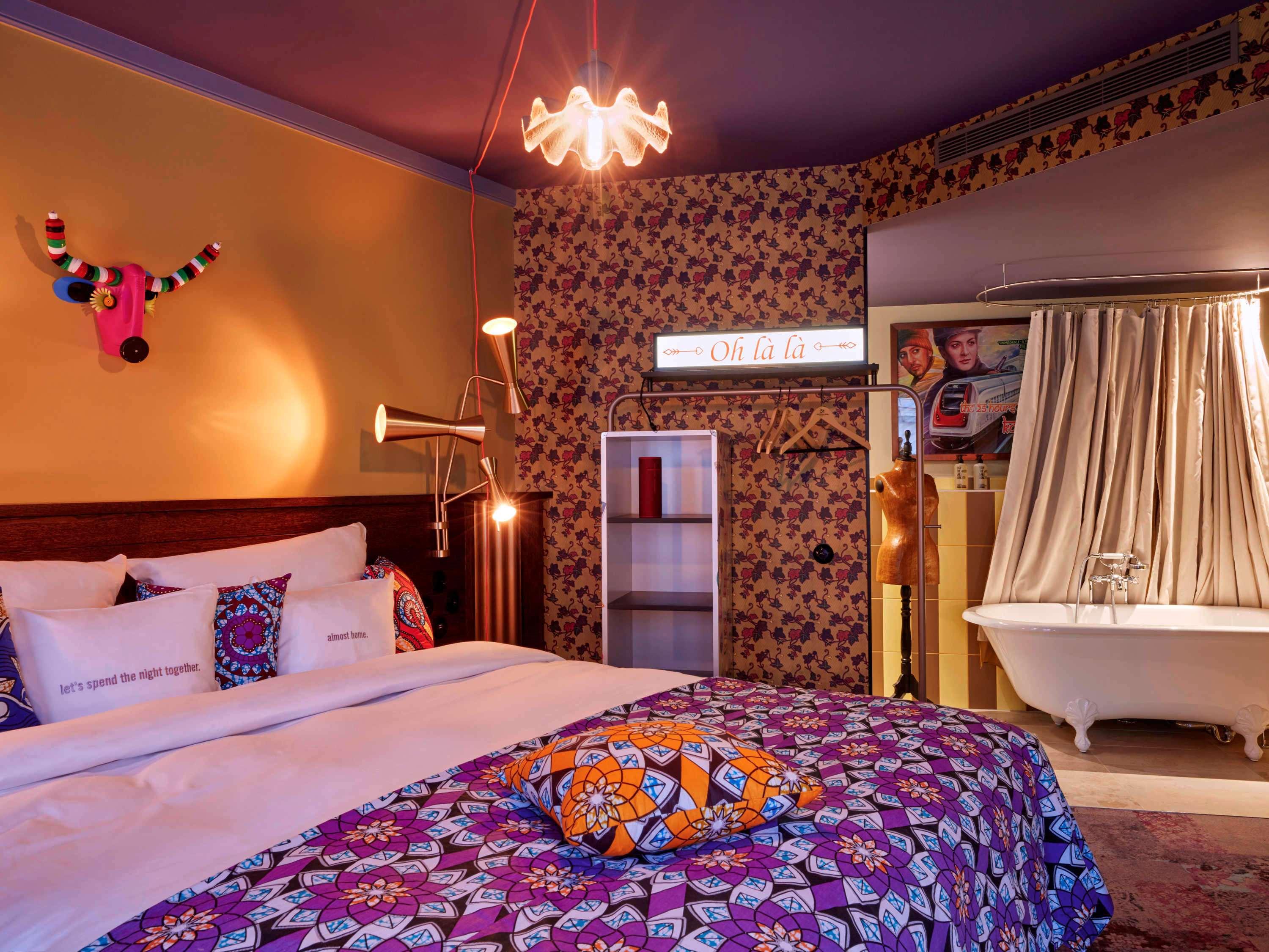 The 25hours Hotel Terminus Nord, a 4-star hotel officially rated by ATOUT France, is centrally located in Paris opposite Gare du Nord station. Enjoy easy access to Eurostar, Thalys, TGV, and RER train services, as well as Villepinte exhibition center, Bourget, Paris CDG airport, and Stade de France. The hotel offers 237 individually decorated rooms, some with views of Gare du Nord or Montmartre and Sacré-Cœur. Amenities include complimentary Wi-Fi, a 24-hour front desk, multilingual staff, dry cleaning/laundry services, a restaurant (NENI Paris) serving local and international cuisine, a bar/lounge, and a coffee shop/cafe. Guest rooms feature free minibar items, LCD TVs, satellite programming, showers with rainfall showerheads, complimentary toiletries, phones, desks, and complimentary bottled water. Bike rentals are available. Distances to nearby attractions include Grands Boulevards (1.1km), Canal Saint-Martin (1.2km), Sacré-Cœur Basilica (1.4km), and many other Parisian landmarks (see full list in original description). The nearest airports are Paris Orly (ORY) and Paris Charles de Gaulle (CDG), with CDG being the preferred airport. Buffet breakfast is available daily (fee applies).