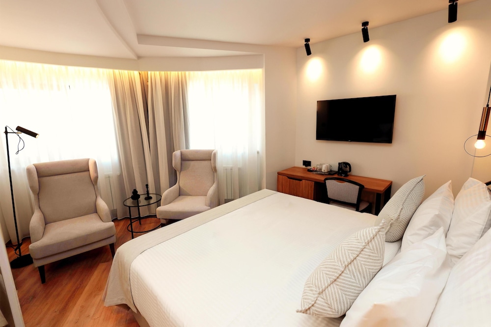 With a stay at Zeus Essence Bucharest Opera, you'll be centrally located in Bucharest, within a 5-minute drive of Palace of the Parliament and Cismigiu Garden. This hotel is 13.3 mi (21.4 km) from Therme Bucharest and 0.3 mi (0.4 km) from Sala Palatului. Make yourself at home in one of the 33 air-conditioned rooms featuring minibars and LCD televisions. Complimentary wireless internet access keeps you connected, and cable programming is available for your entertainment. Bathrooms have shower/tub combinations and hair dryers. Conveniences include phones, as well as safes and desks. Distances are displayed to the nearest 0.1 mile and kilometer.