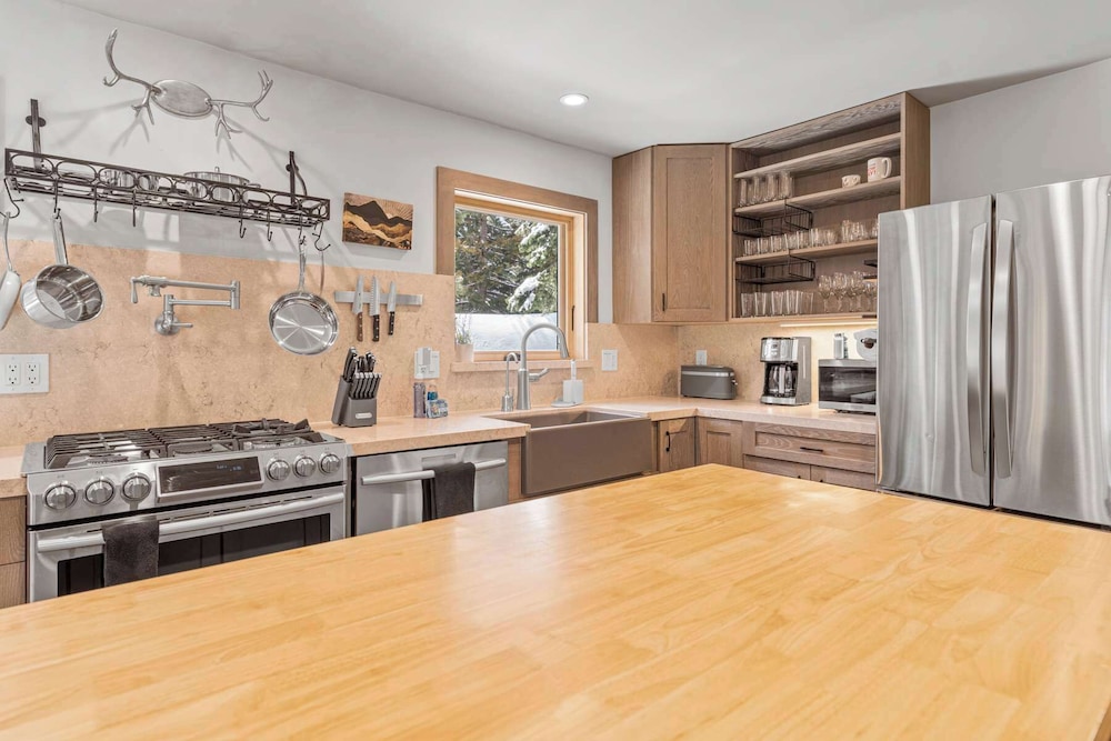With a stay at this vacation home in Tahoe City (Talmont), you'll be within a 10-minute drive of St. Nicholas Episcopal Church and Hurricane Bay. This luxury vacation home is 10.6 mi (17 km) from Palisades Tahoe and 21.9 mi (35.2 km) from Northstar California Resort. Treat yourself to a stay in this individually decorated vacation home, which features a fireplace and an outdoor private hot tub. There's a private furnished patio. A kitchen is outfitted with a refrigerator, an oven, and a stovetop. A 55-inch flat-screen television is provided, with digital programming available. A private bathroom has a deep soaking tub and a hair dryer. Distances are displayed to the nearest 0.1 mile and kilometer.