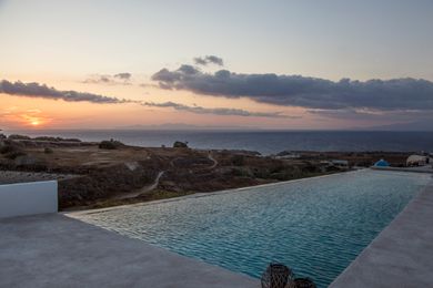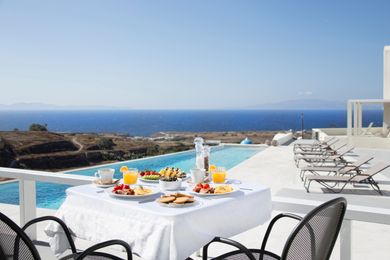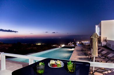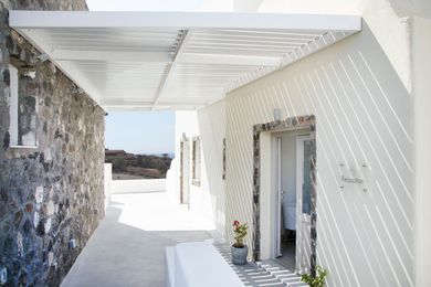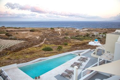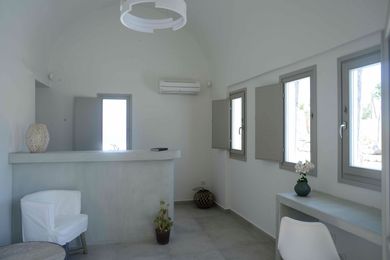 In absolute harmony with island?s architecture Aplai Dome is built in Oia? s area. It is only 170 meters far from Oia?s centre where you can admire the unique and worldwide known Caldera of Santorini and at the same time to visit high aesthetic shops, cafes, bars and restaurants.In very close distance and only 2 kilometers from Aplai Dome is the exotic and known for its volcanic rocks Kouloymbos beach, the organized beach Baxe and for the more adventurous of you one kilometer far from Aplai Dome is the Ammodi, the old port of Santorini, with a lot of traditional fish taverns and the Sant Nikolas island which challenge you to dive in the blue Aegean sea.In the center of the Aplai Dome complex dominates a minimalist design swimming pool with hydromassage, while its rooms have a private veranda with stunning views of the sunset of Oia and the endless blue of the Aegean Sea.Aplai Dome is 10 km from Fira Town, 12 km from the port and 11 km from the airport. It has luxurious facilities like air conditioning, wi-fi, TV, fridge, sink, electric hotplate, safe box, hairdryer. The wonderful pool area is ideal for relaxing moments and for enjoying your breakfast with coffee, snacks, drinks, sunbathing all day long or reading under the umbrellas until the evening, when the sun falls into the blue of the Aegean Sea.The NameThe name of Aplai Dome wasn?t inspired, but it has remained unchanged for centuries, so we decided to keep this name and its history. ?Dome? represents the main architecture of the place, while Aplai used to call this property as a hillside, giving the Aplai Dome unobstructed sea views.