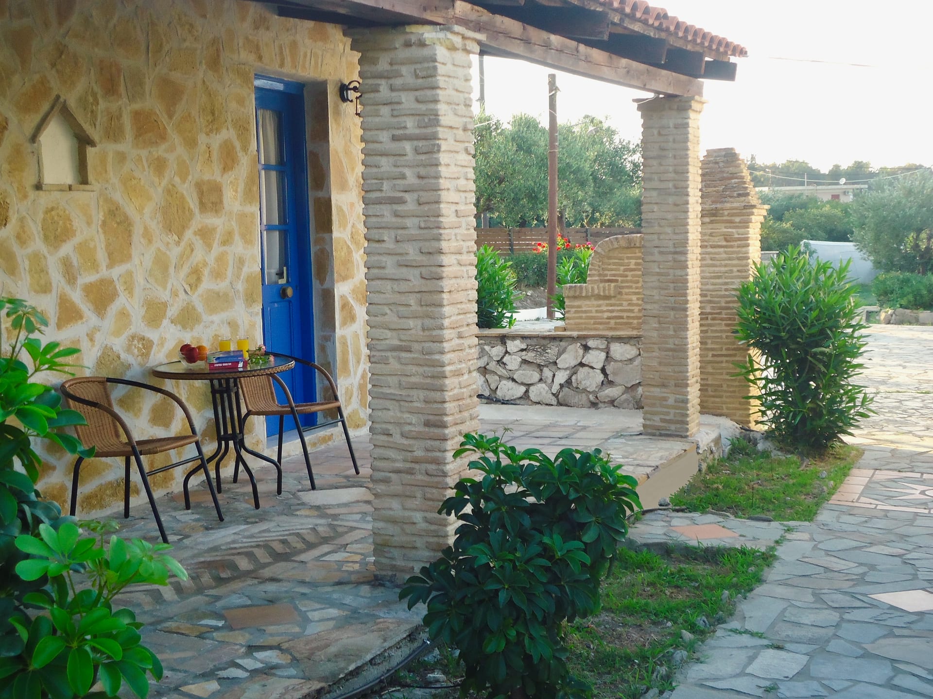 The lovely small complex is situated in a private area of 5.500 m2, among beautiful gardens and olive groves, just 500 m from the beach, 300 m from the center of the village with the shops, taverns, cafe etc. Banana beach is at 1,3 km, Zakynthos town/port is at 12 km, while ZTH airport is 15 km.